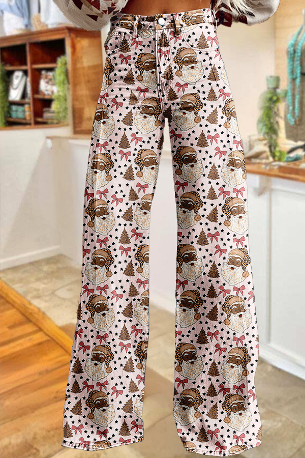 Classic Leopard Print Santa Claus Wide-Leg Pants