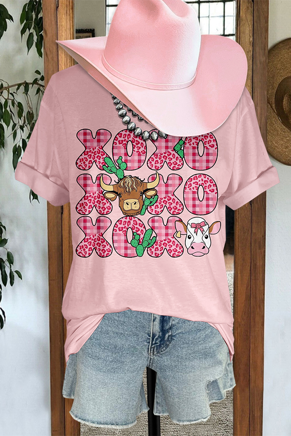 Western Valentine's Day Xoxo Cow Head T-Shirt