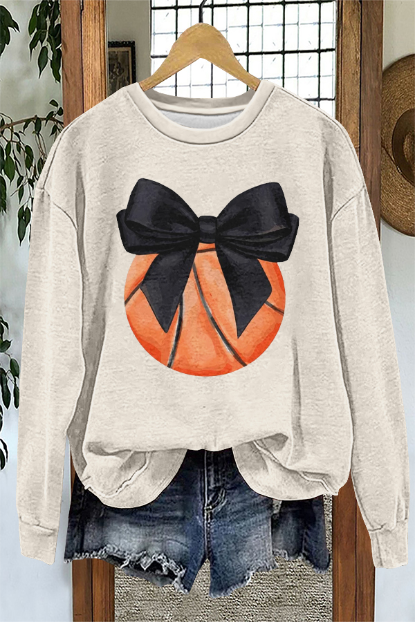 Cute Gameday Bow Basketball Print Sweatshirt