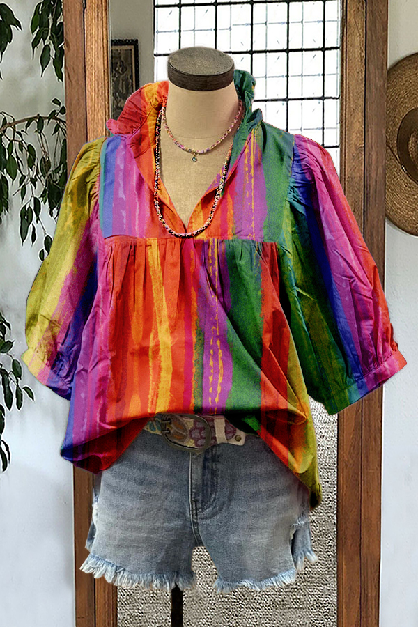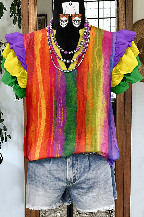Unique Mardi Gras Print Flying Sleeve Blouse