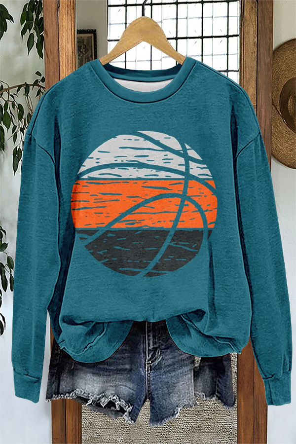 Stylish Gameday Basketball Print Sweatshirt