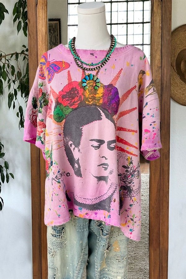 Sweet Floral Patchwork Print Distressed Bat Sleeve T-Shirt