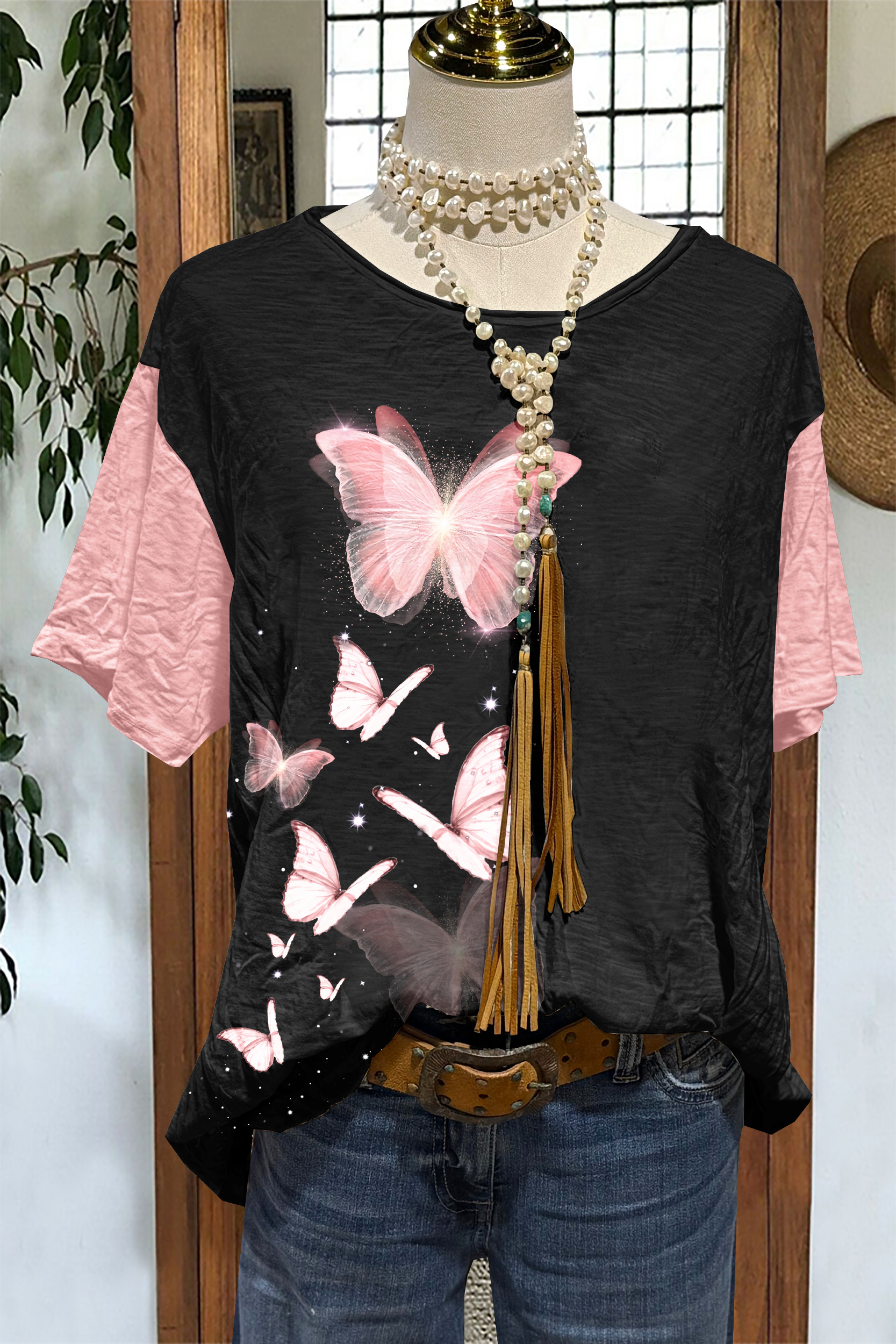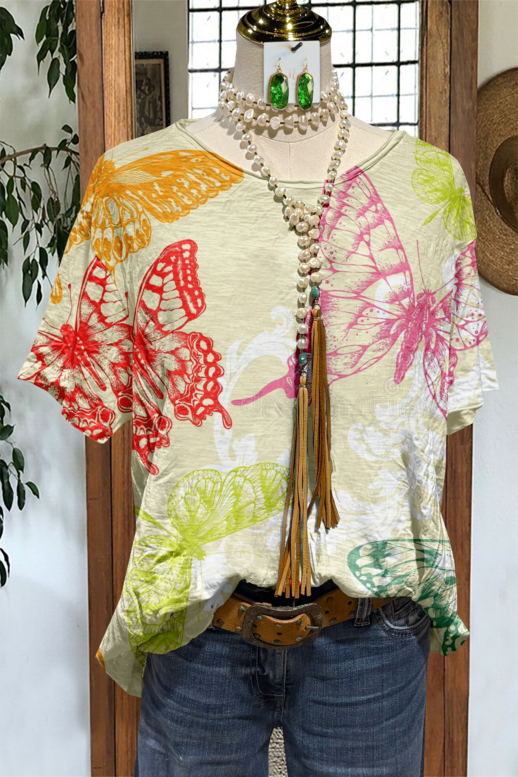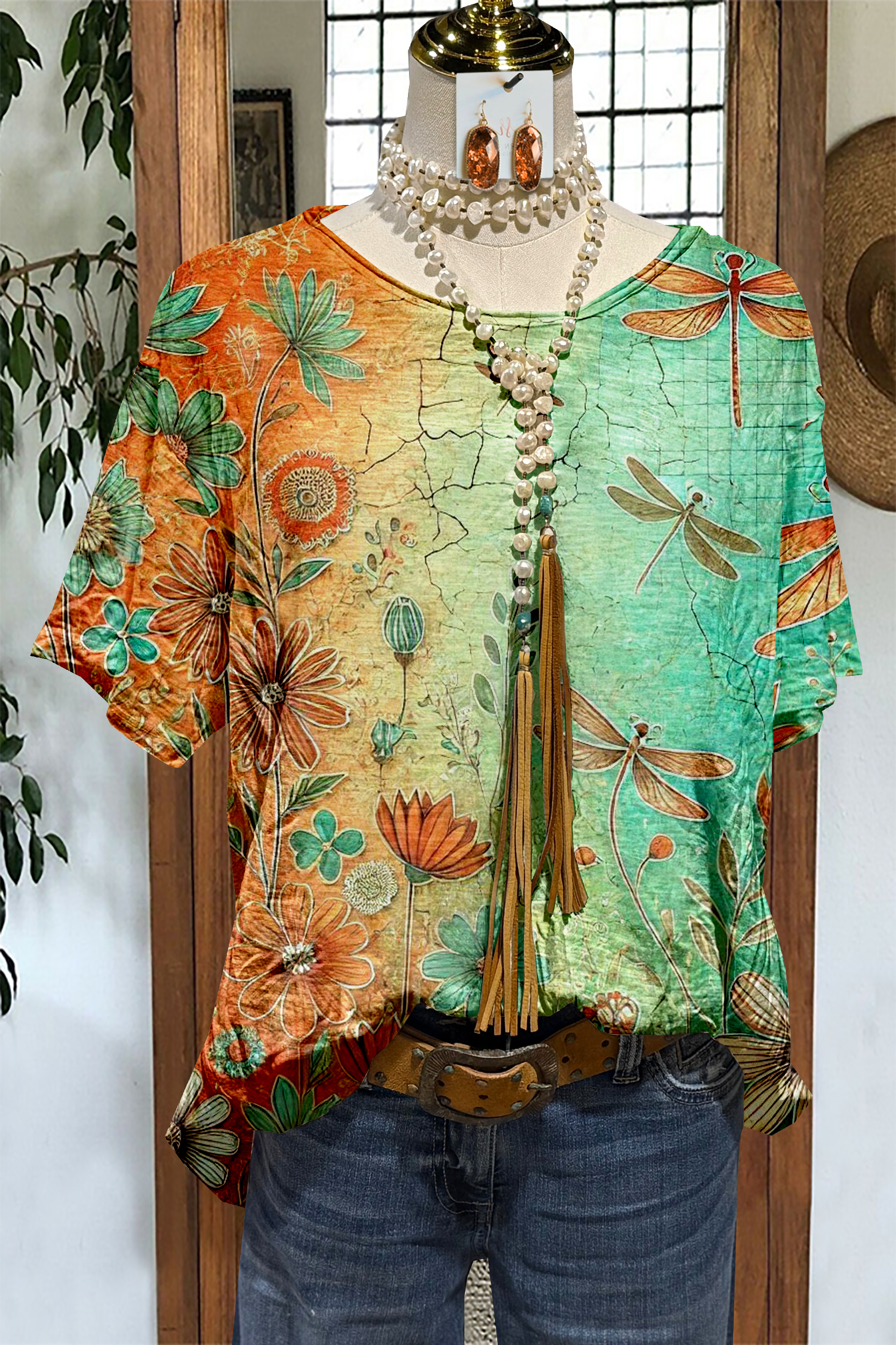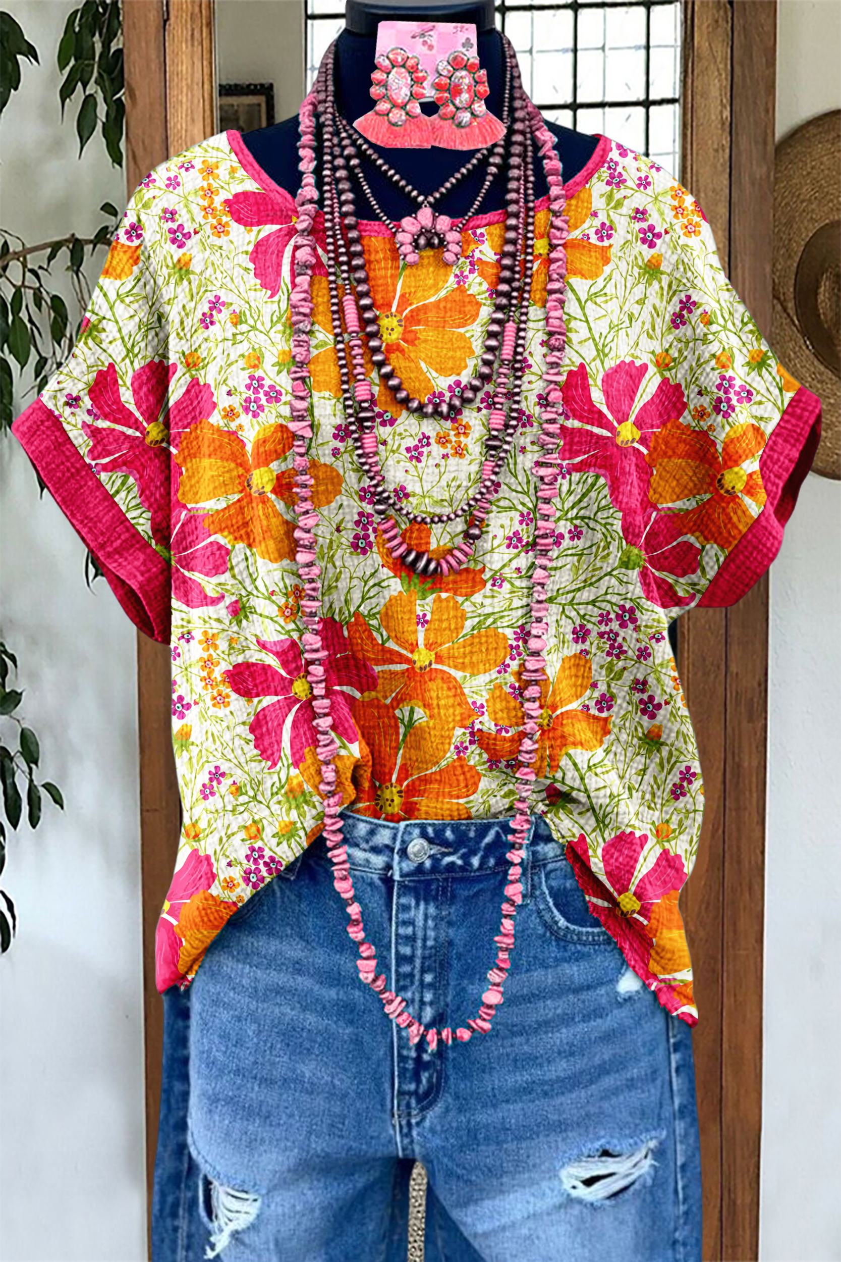 Classic Floral Print Textured Bat Sleeve T-Shirt