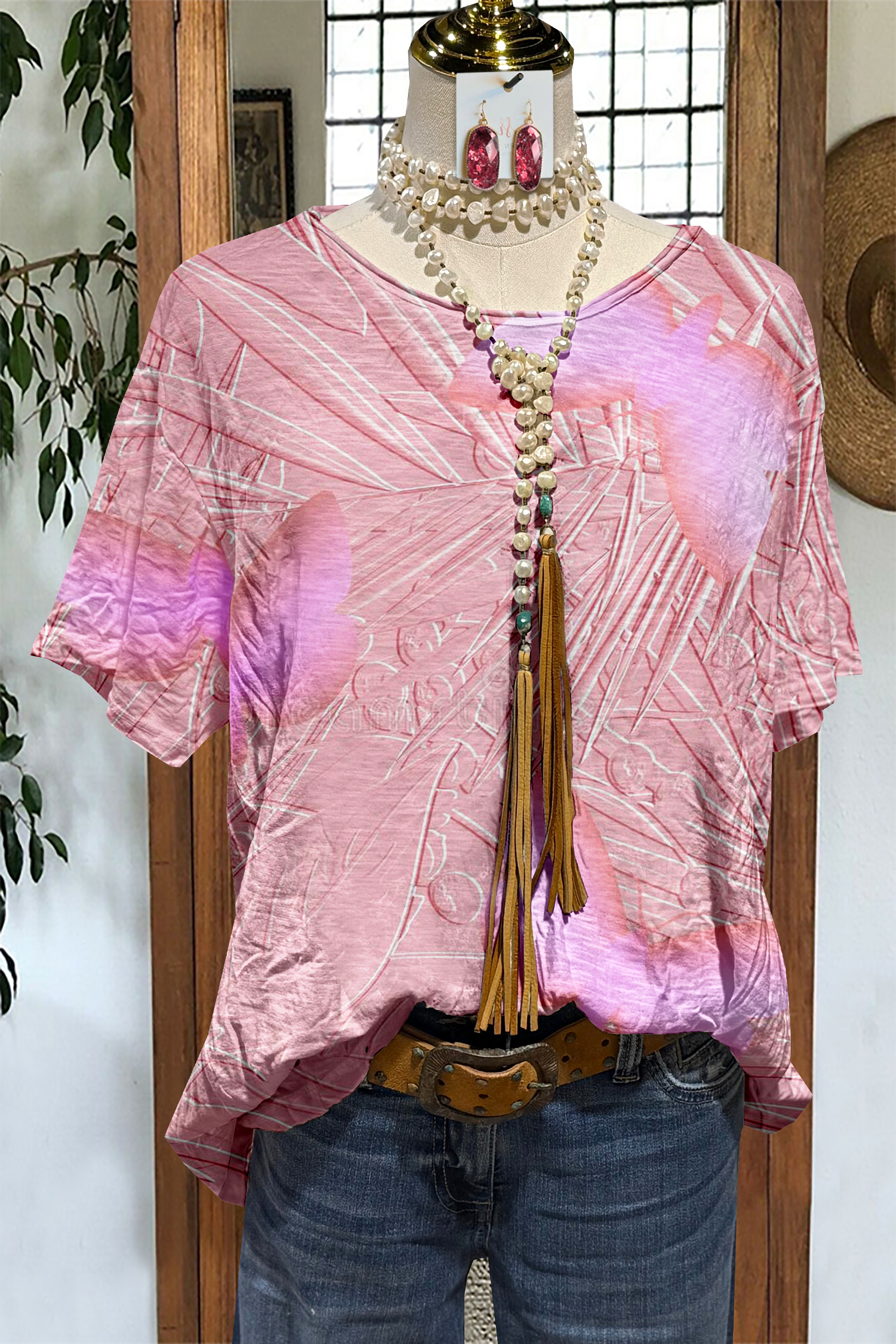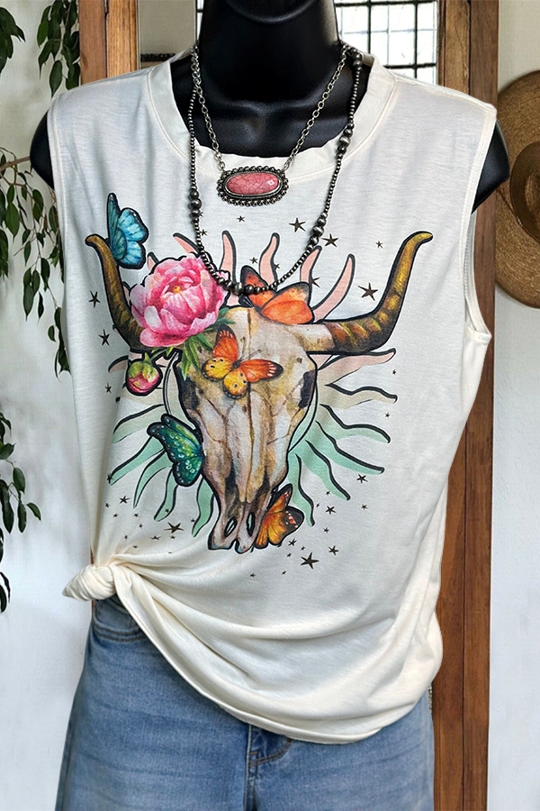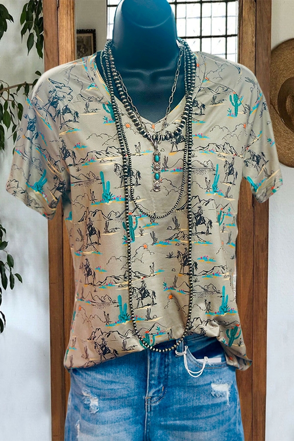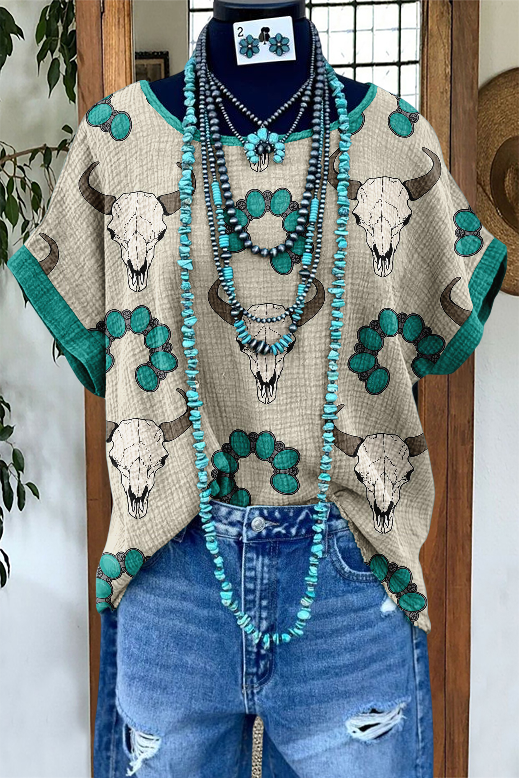 Western Longhorn Print Textured Bat Sleeve T-Shirt