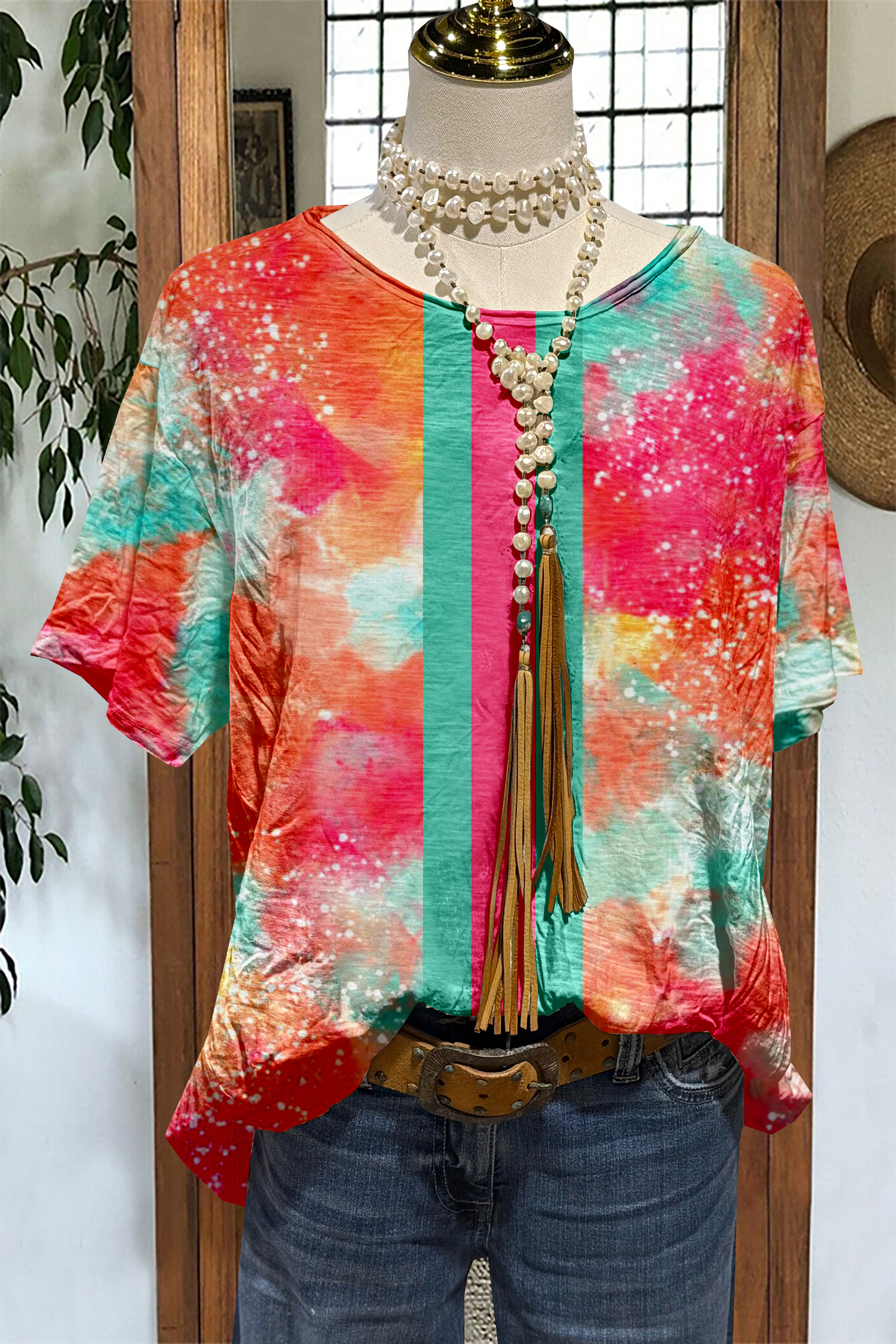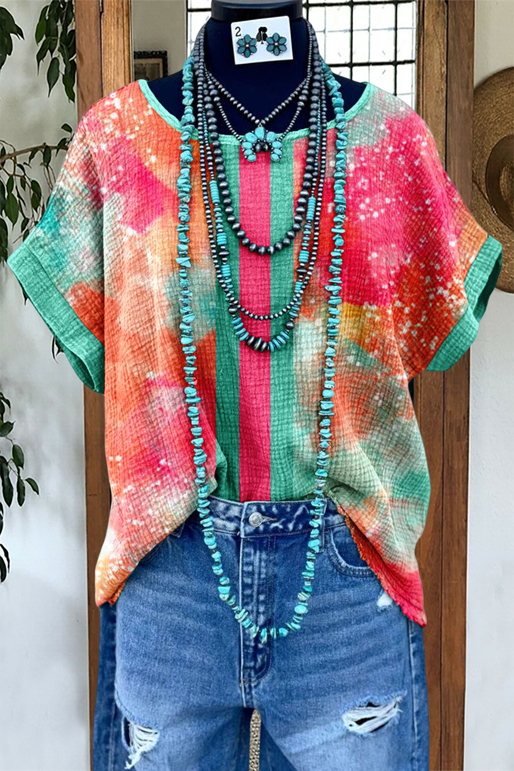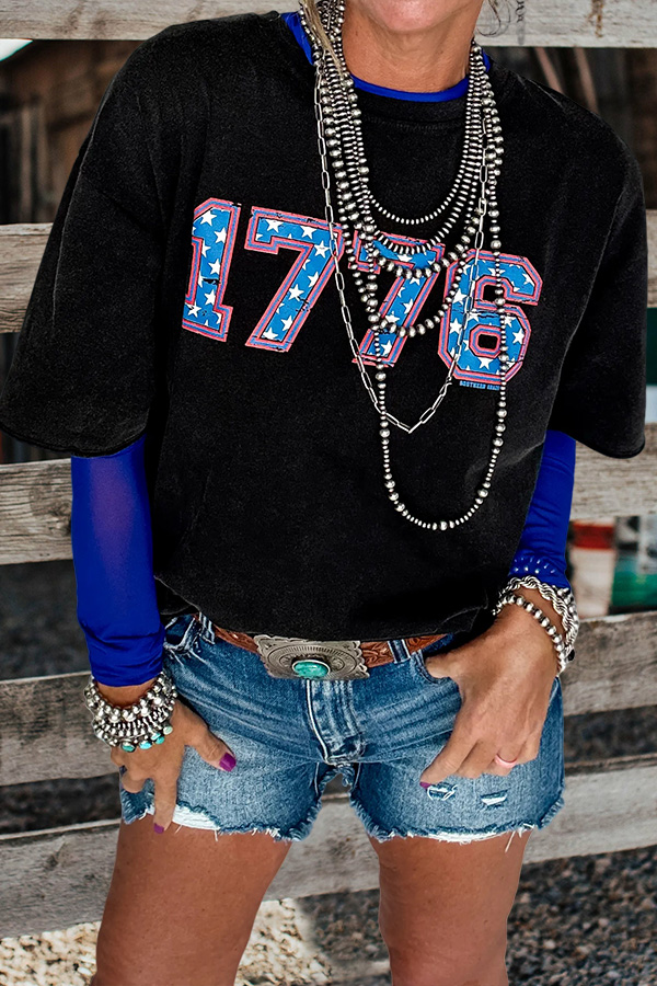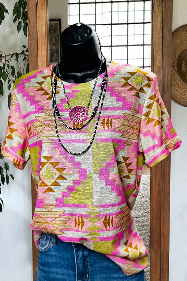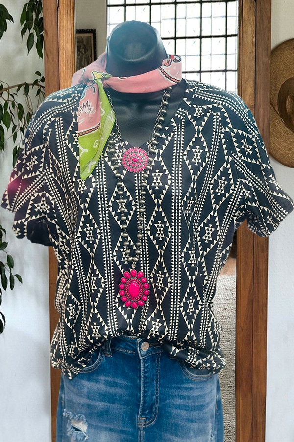 Western Longhorn Print Textured Bat Sleeve T-Shirt