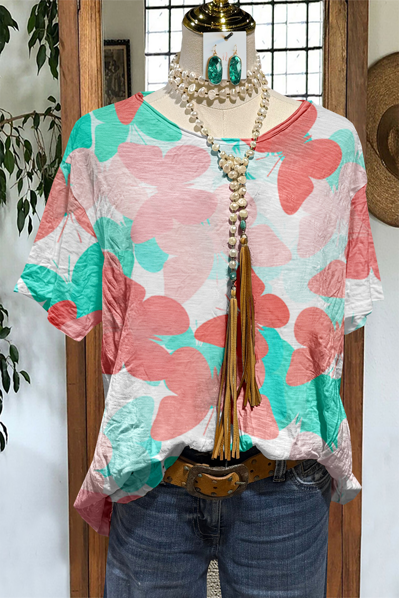 Sweet Leaf Leopard Print Textured Batwing Sleeve T-shirt