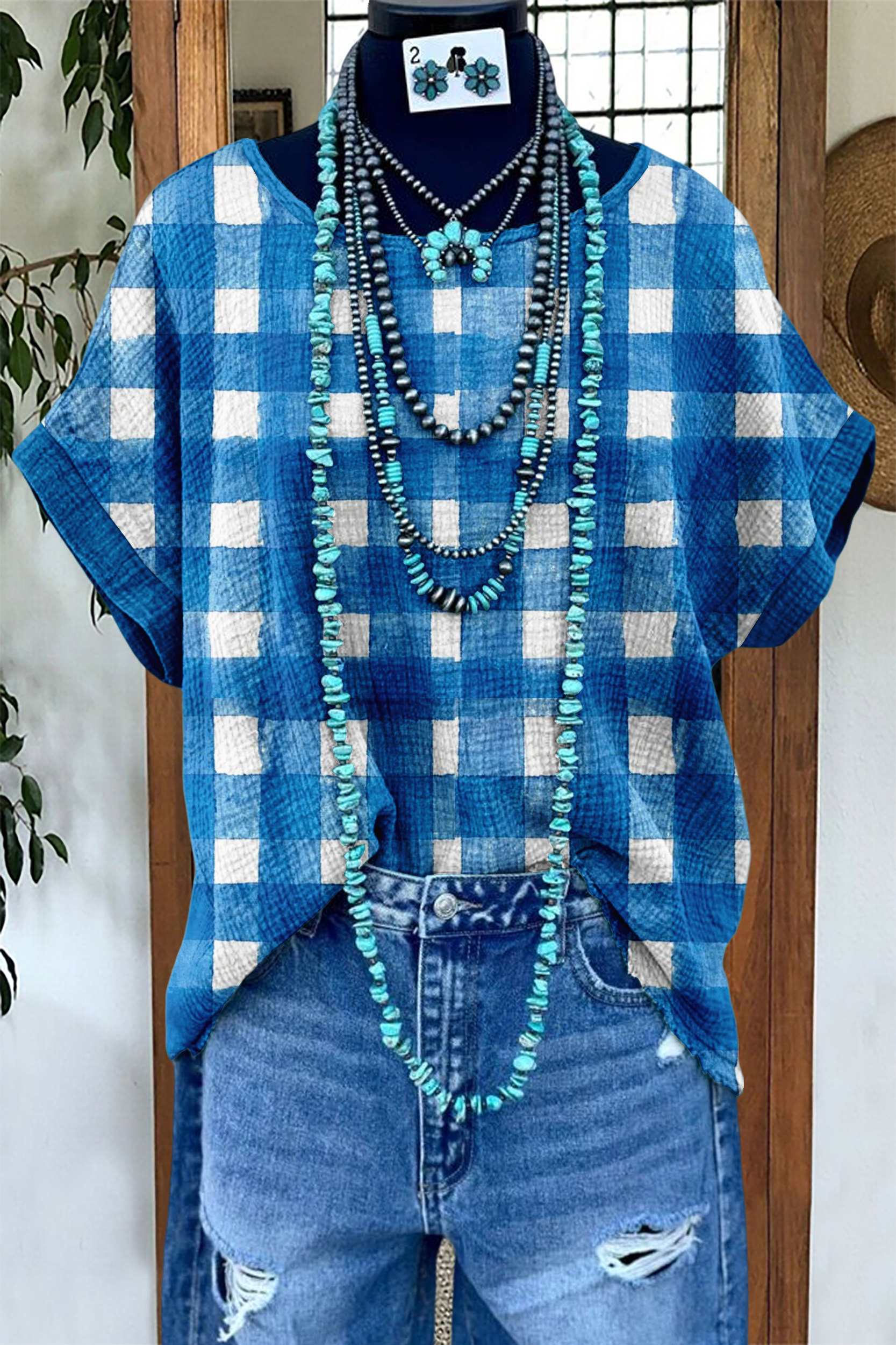 Casual Check Print Textured Bat Sleeve T-Shirt