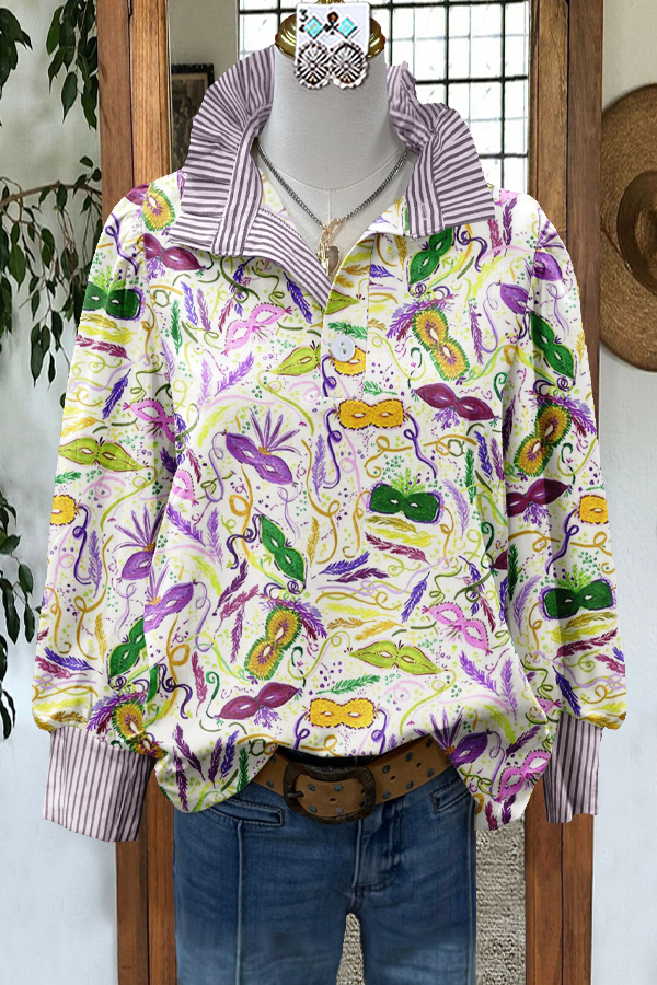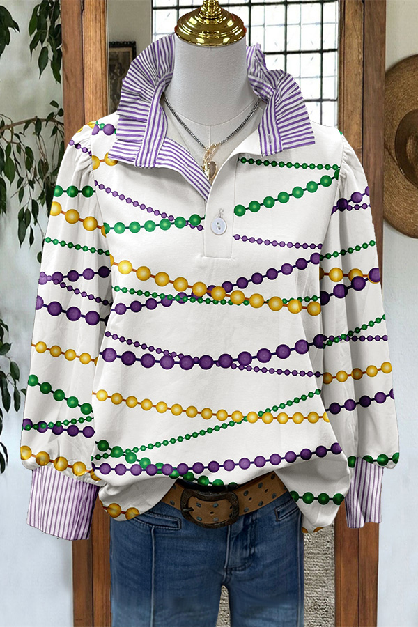 Mardi Gras Colorful Chain Striped Ruffle Blouse