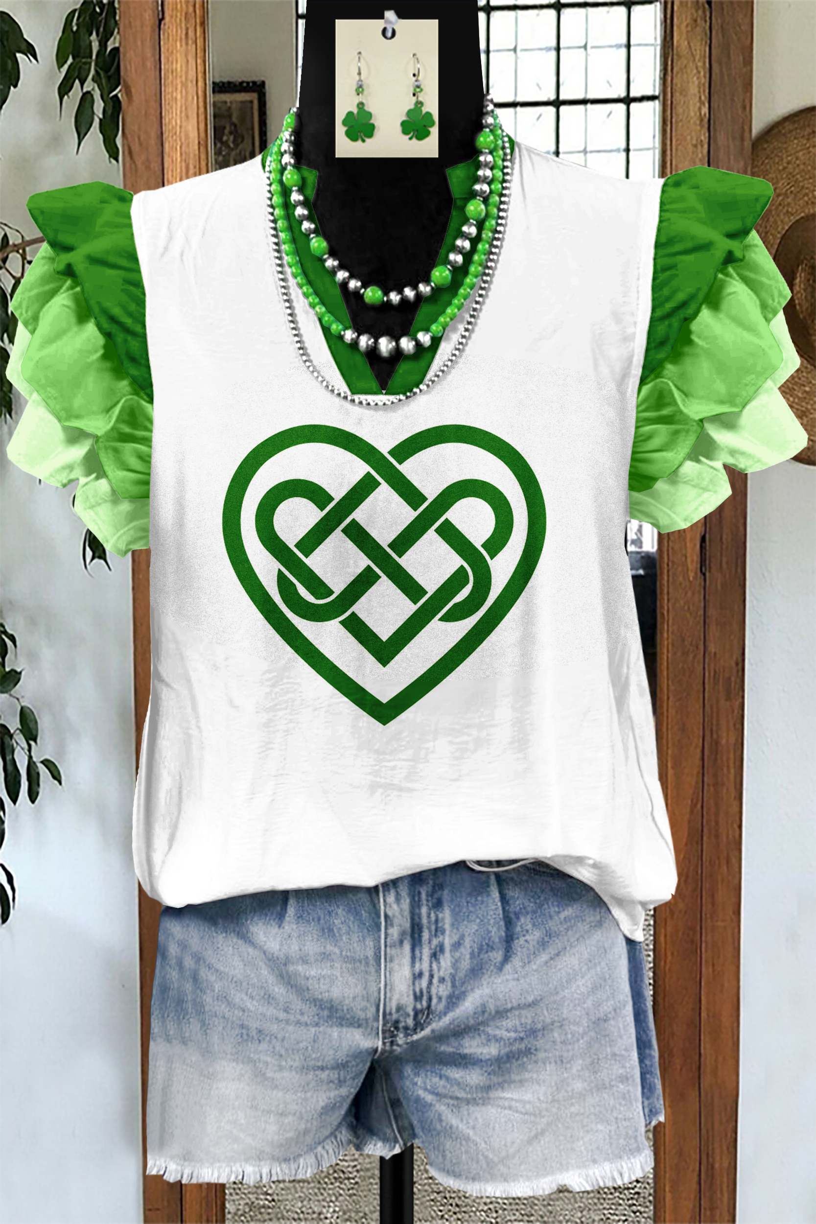 Celtic Knot St. Patrick's Day Print Flying Sleeve Blouse