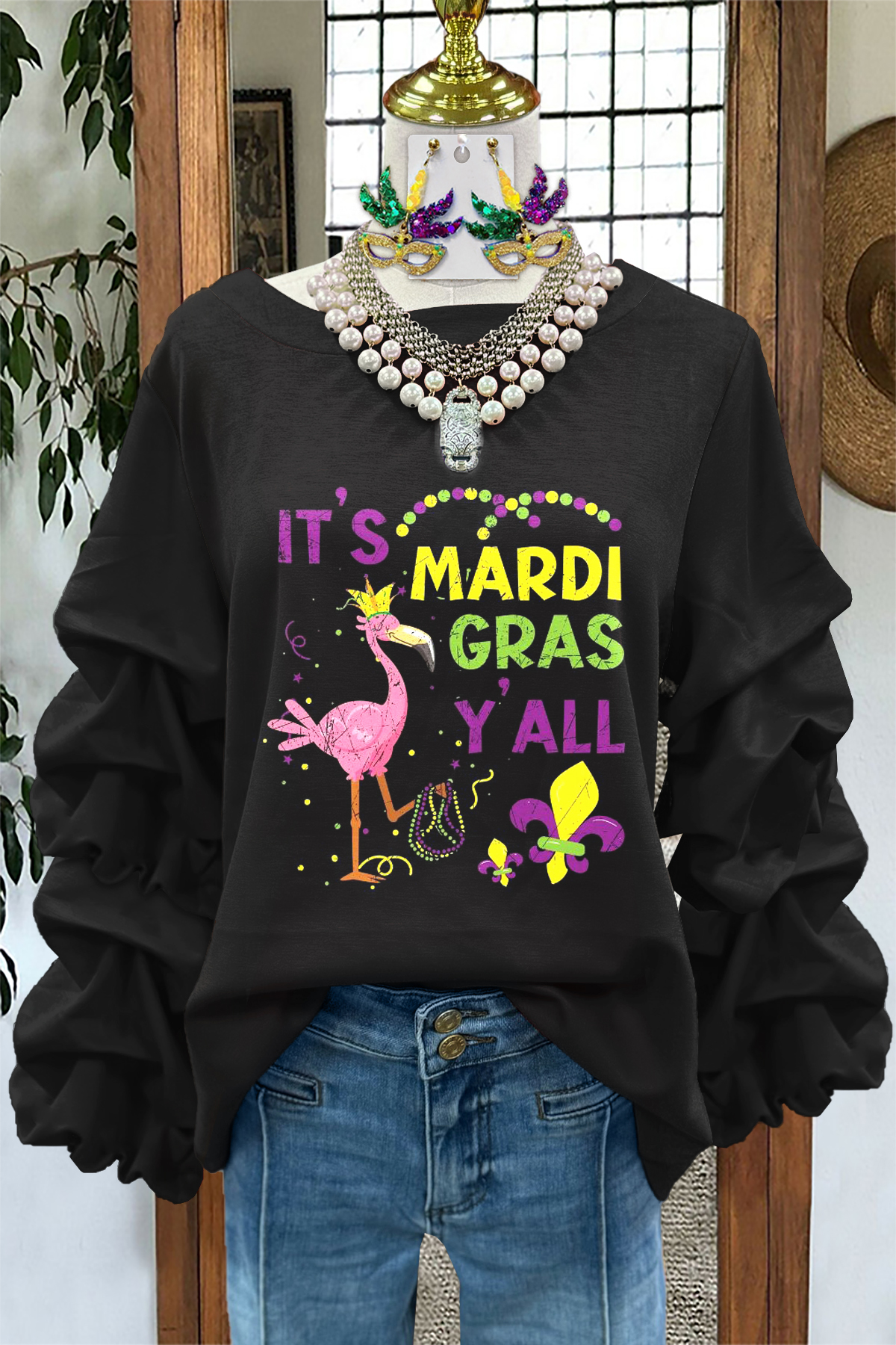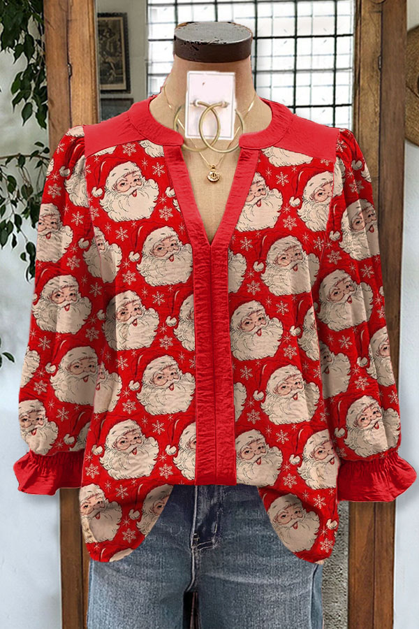 Pleated Ruffle Puff Sleeve Floral Print V-neck Blouse
