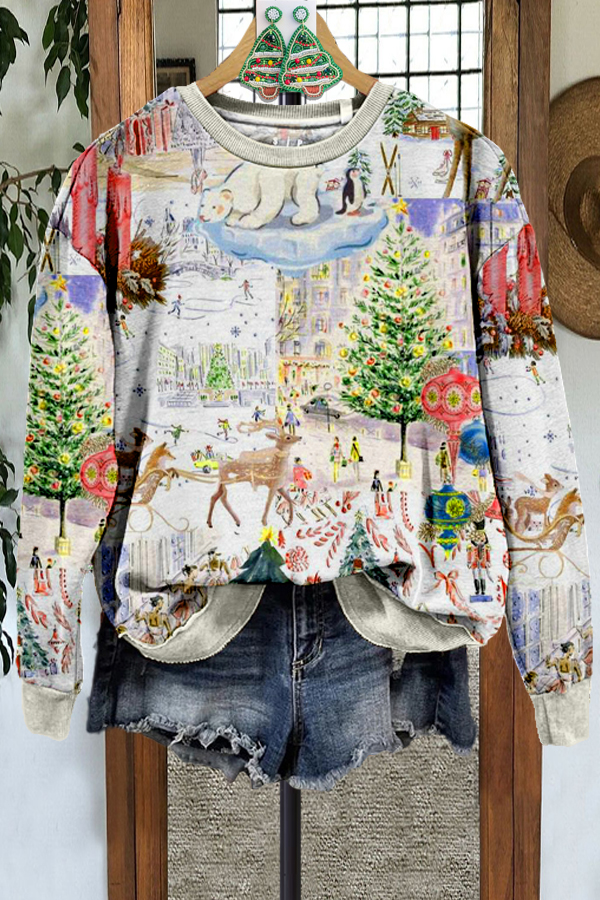 Sweet Love and Peace Plaid Floral Stitching Long Sleeve Sweatshirt