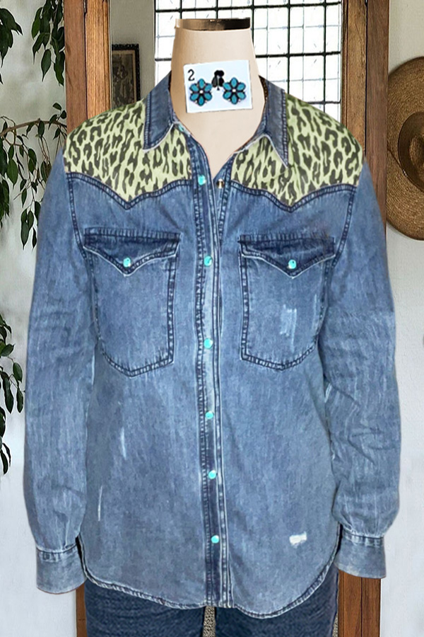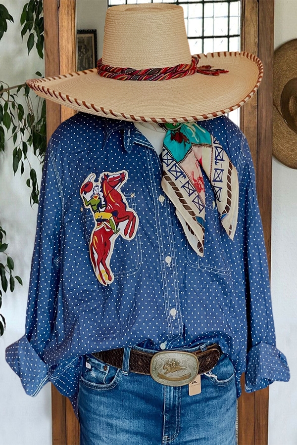 Denim-Style Polka Dot Horse Racing Print Shirt