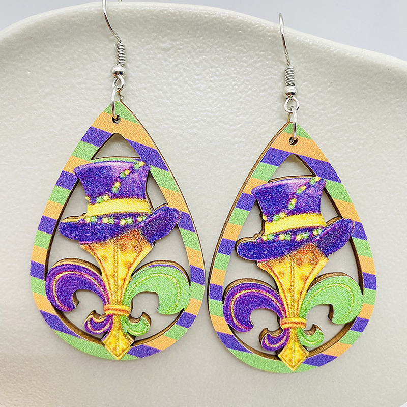 Western Cool Cowboy Hat Boots Wooden Earrings