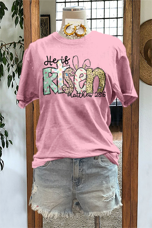 Cute Floral Easter Bunny Print Puff Sleeve T-shirt