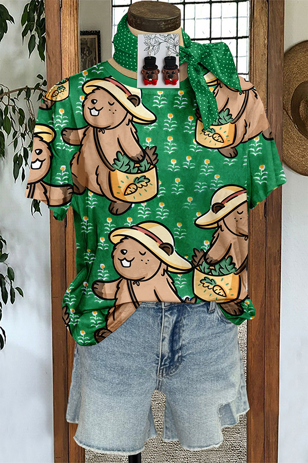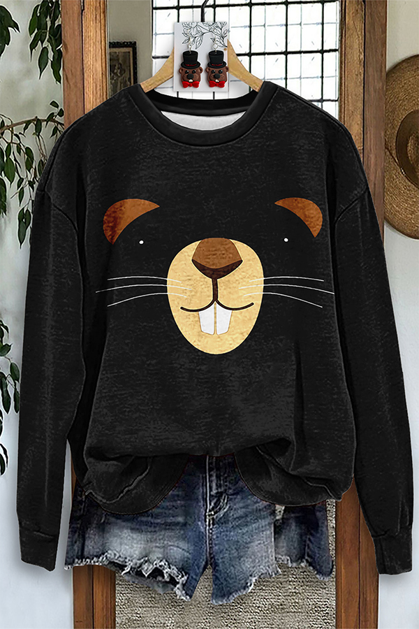 Vintage Happy Groundhog Print Sweatshirt