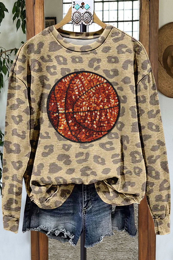 Elegant Contrast Leopard Print Basketball Sweatshirt