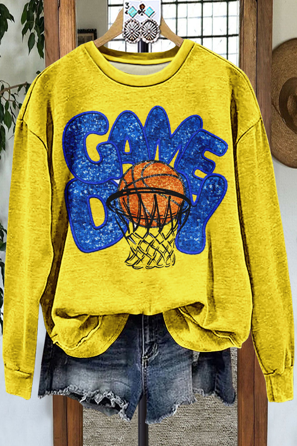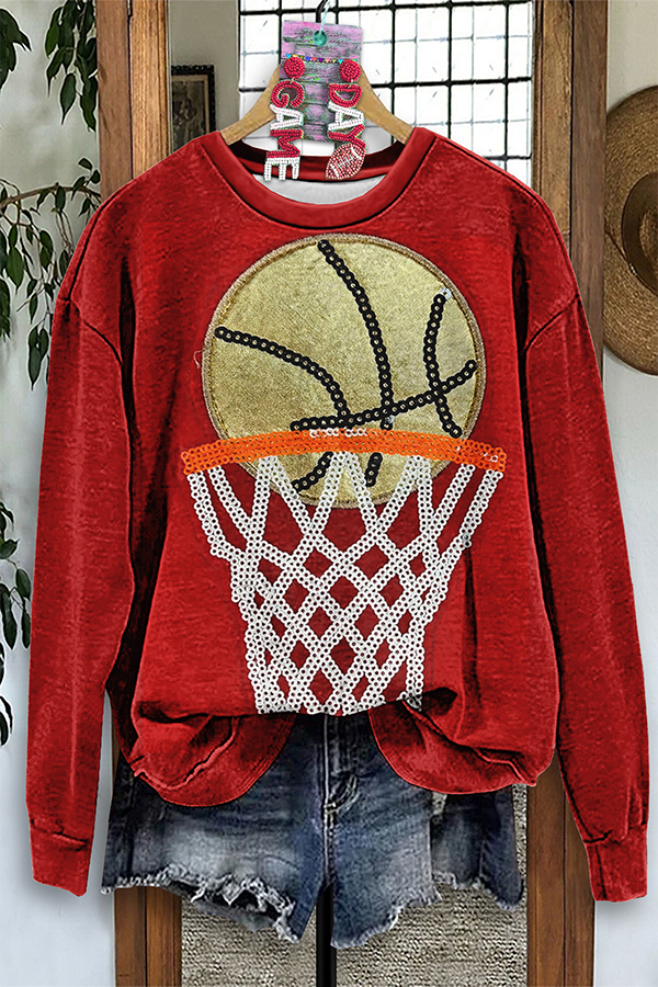 Casual Game Day Basketball Print Sweatshirt