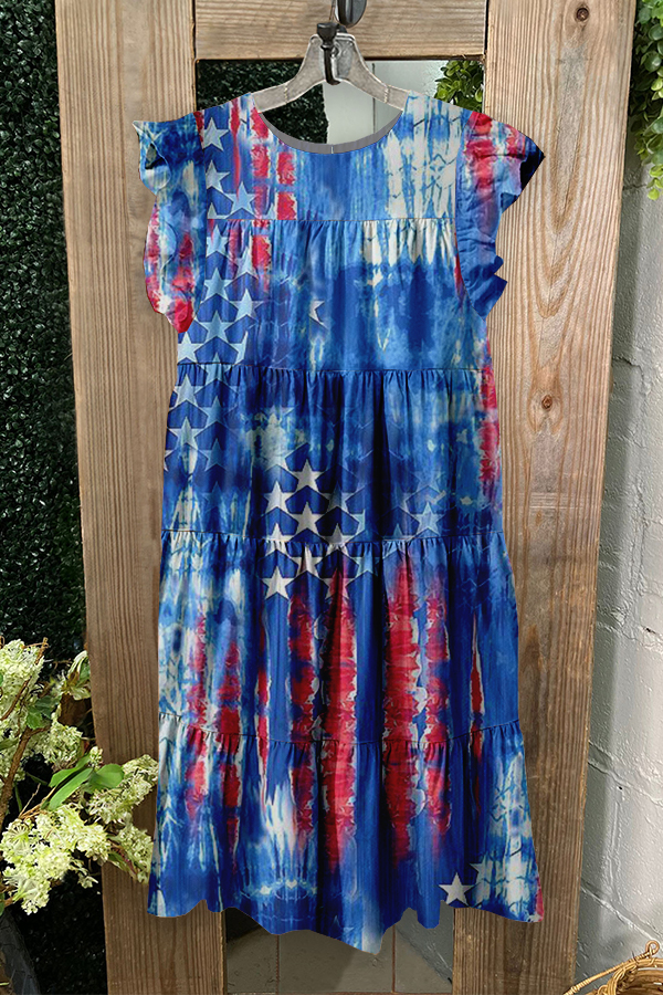 Chic Patriotic Day Print Ruffled Pleated Dress