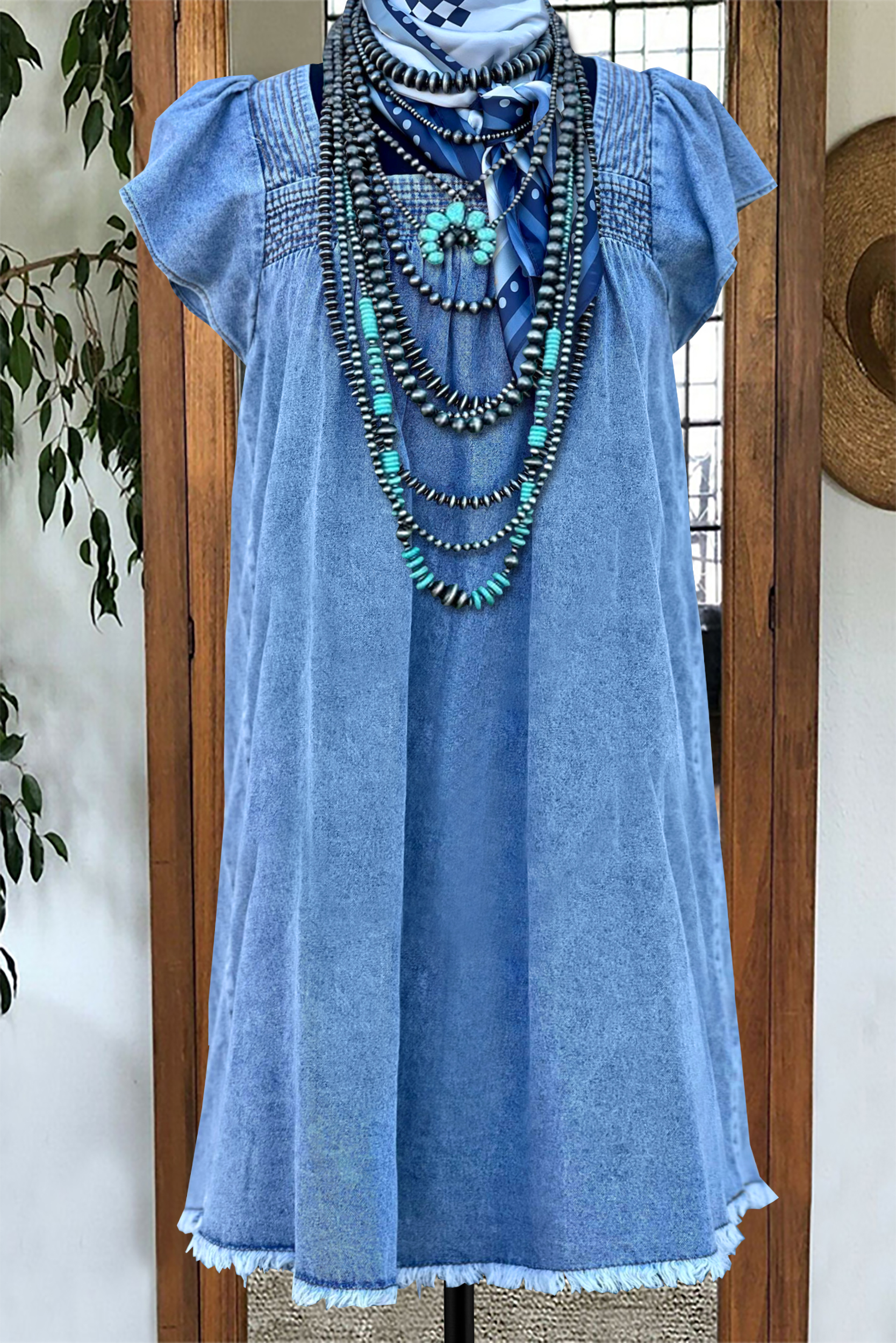 Classic Square Neck Denim Raw Edge Dress