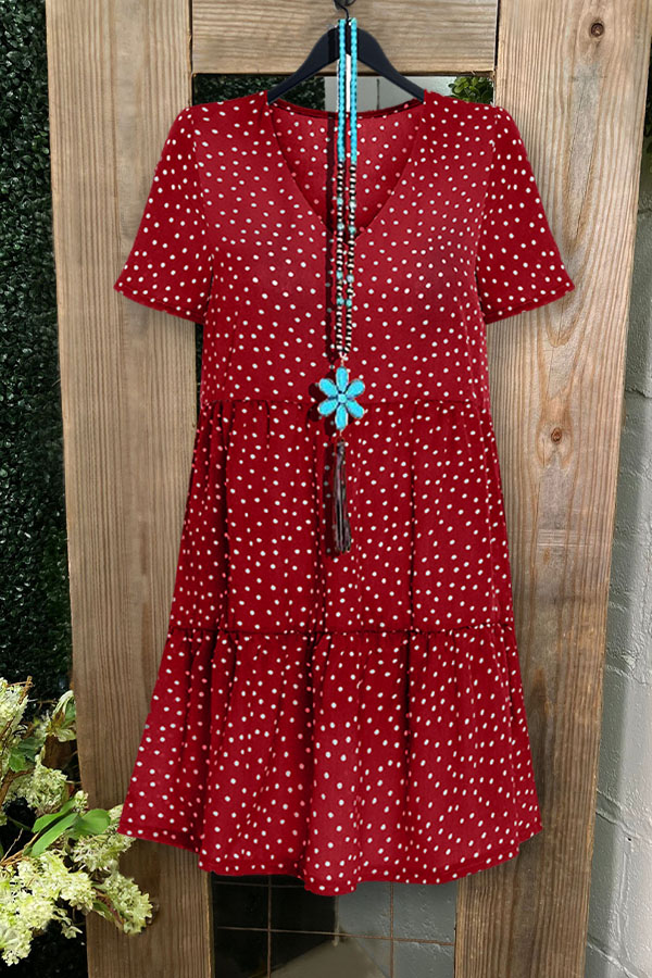 Casual V-neck Polka Dot Floral Ruffled Dress