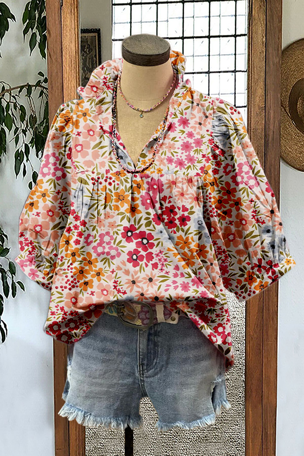 Boho Chic Floral Print Ruffled Raglan Sleeve Dress