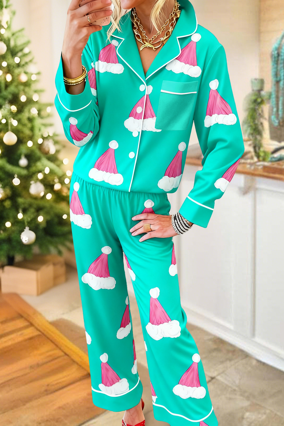 Classic Christmas Santa Claus Top and Pants Pajama Set