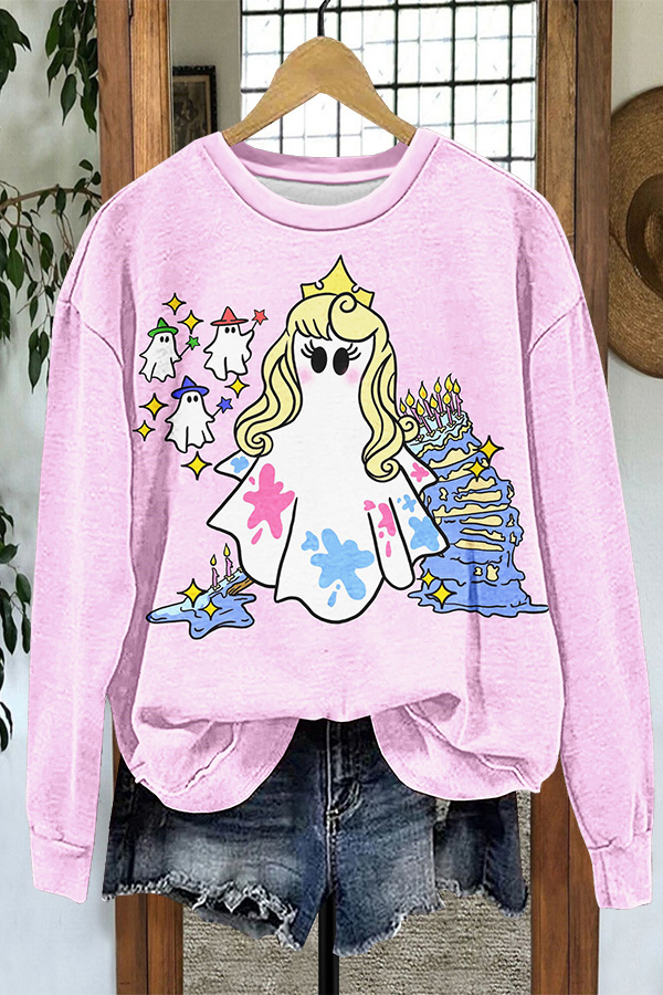 Halloween Cute Ghost Flower Puff Sleeve Shirt