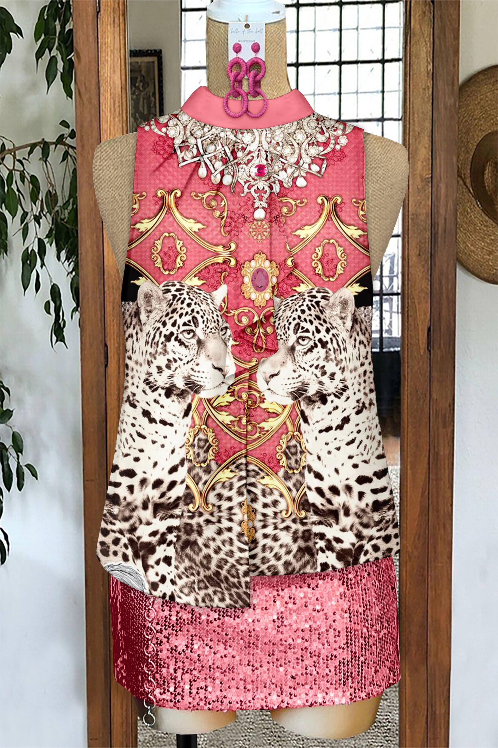 Unique Leopard Print Ruffle Sleeveless Blouse