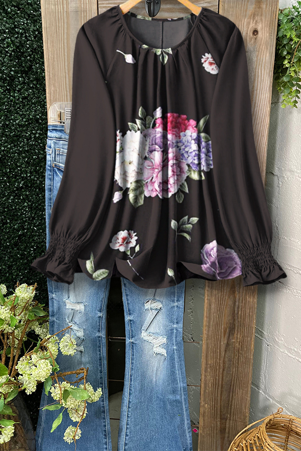 Romantic Garden Floral Ruched Ruffle Sleeve Top