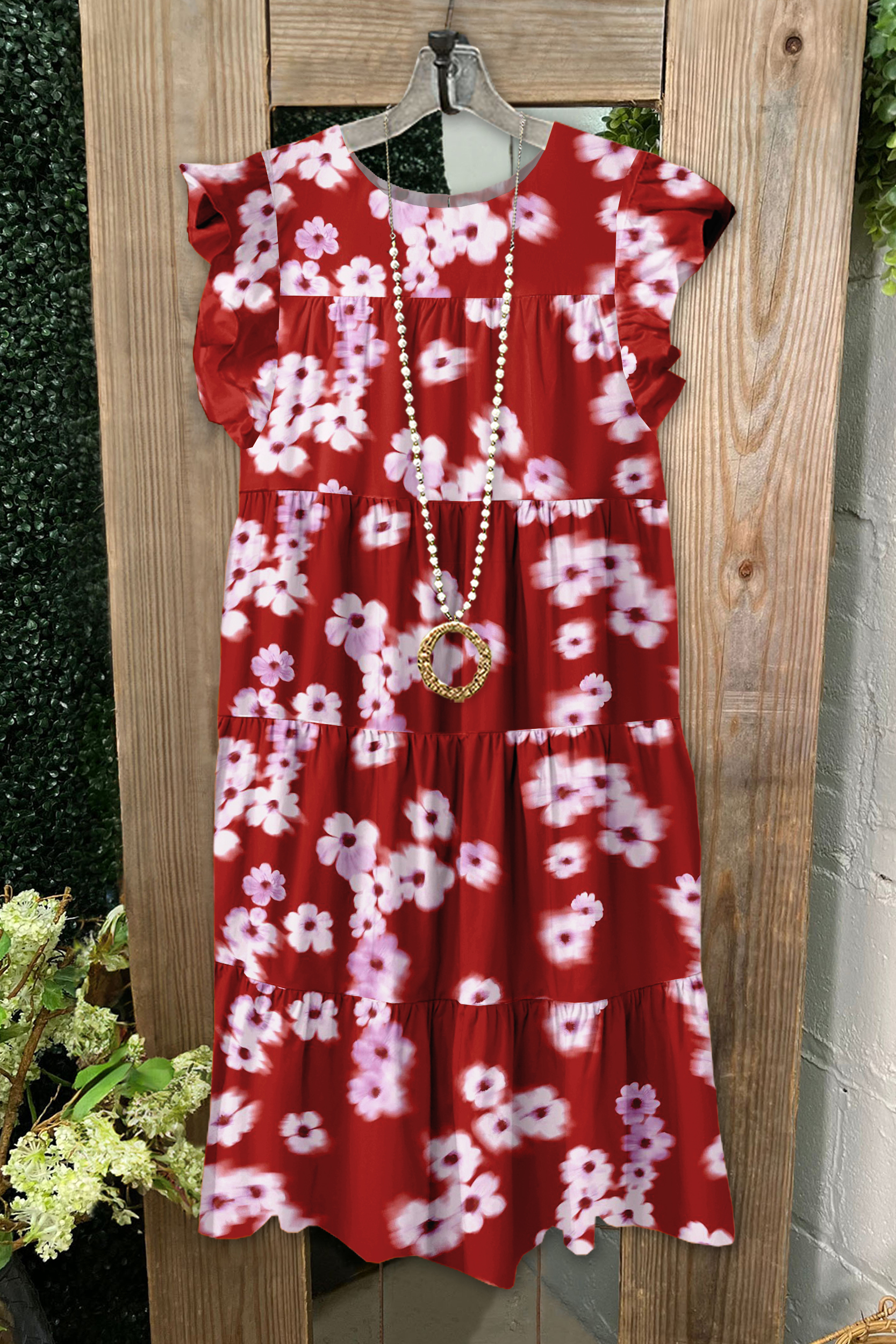 Vintage Flower Print V-neck Pleated Ruffle Dress