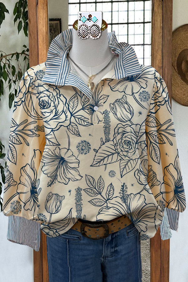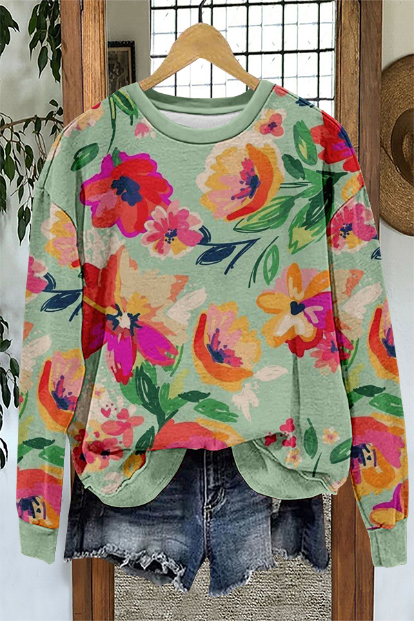 Elegant Contrast Floral Print Sweatshirt