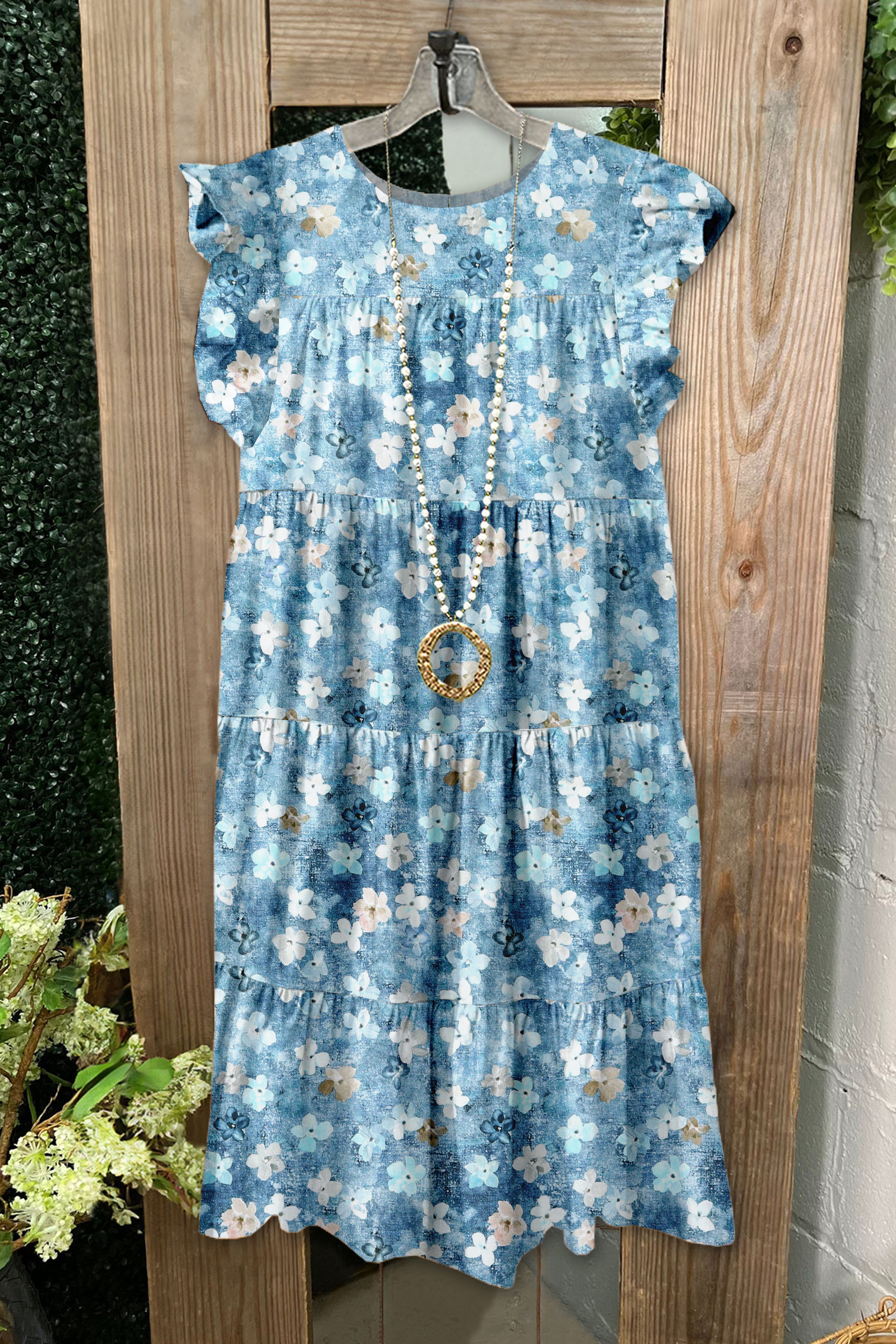 Classic Floral Print Pleated Fly Sleeve Dress