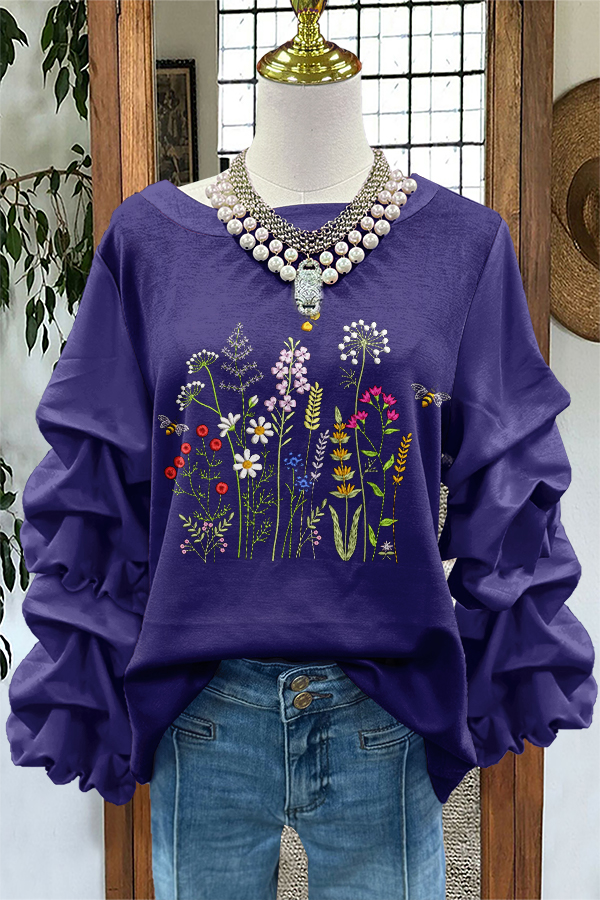 Sweet Wildflowers Print Pleated Sweatshirt