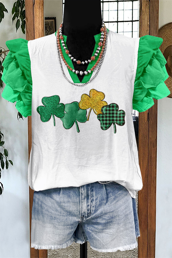 Classic Celtic Knot St. Patrick's Day Print Flying Sleeve Blouse