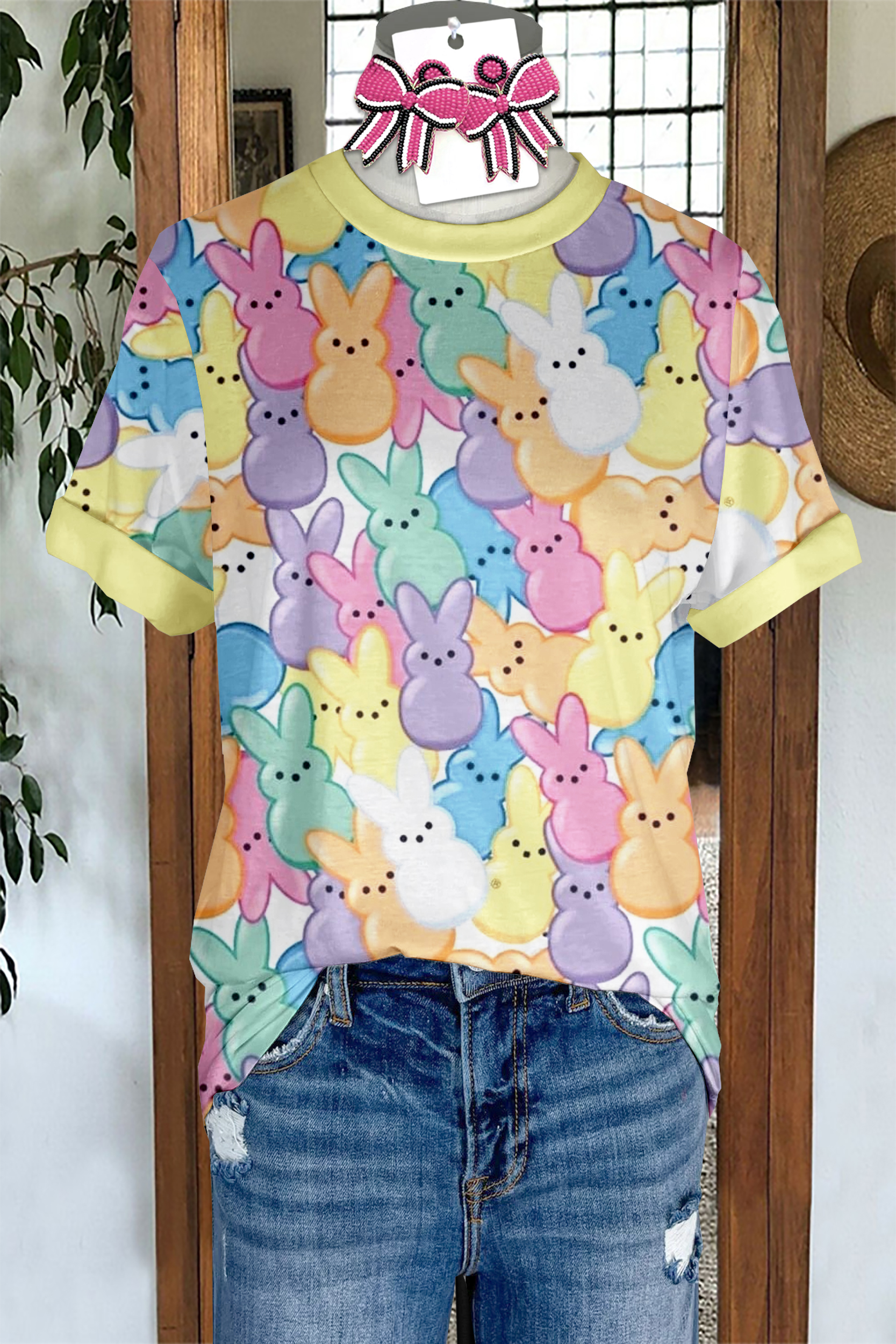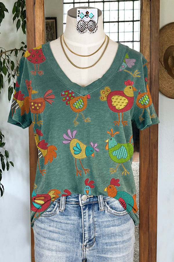 Flower Print Frayed Mid-sleeved T-shirt