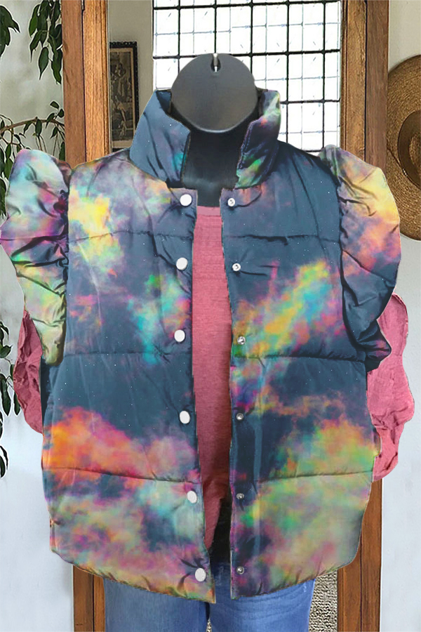 Psychedelic Sky Tie-dye Print Ruffle Vest