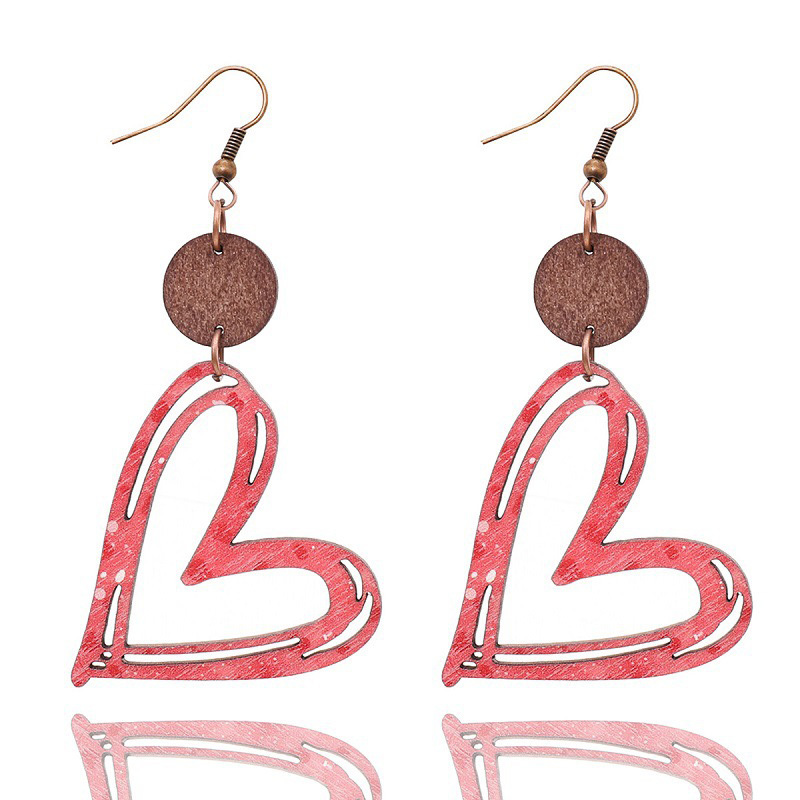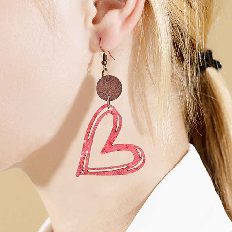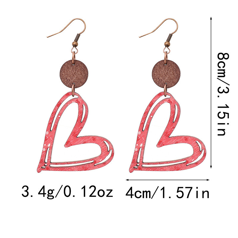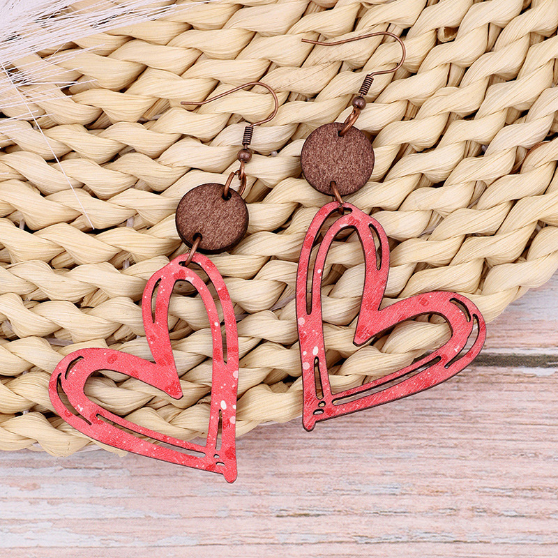 Valentine's Day Heart Hollow Wooden Earrings
