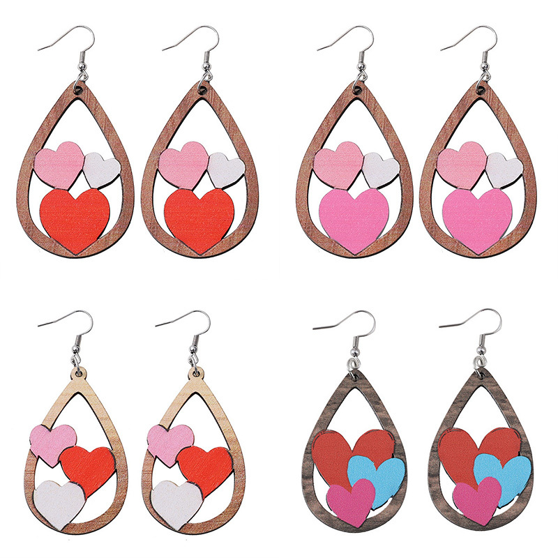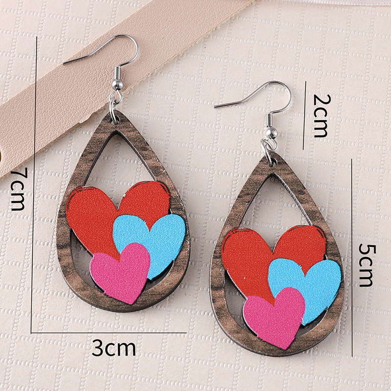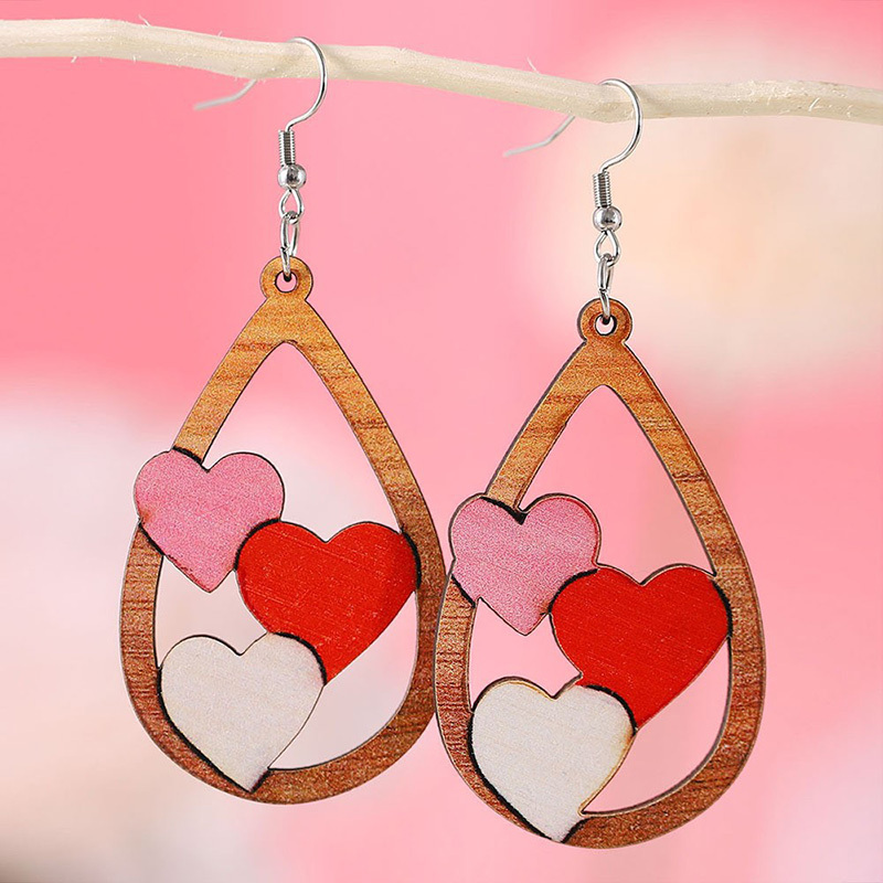 Valentine's Day Heart Patchwork Wooden Drop Earrings