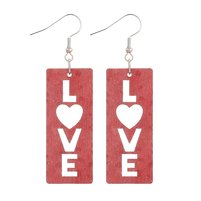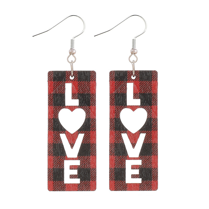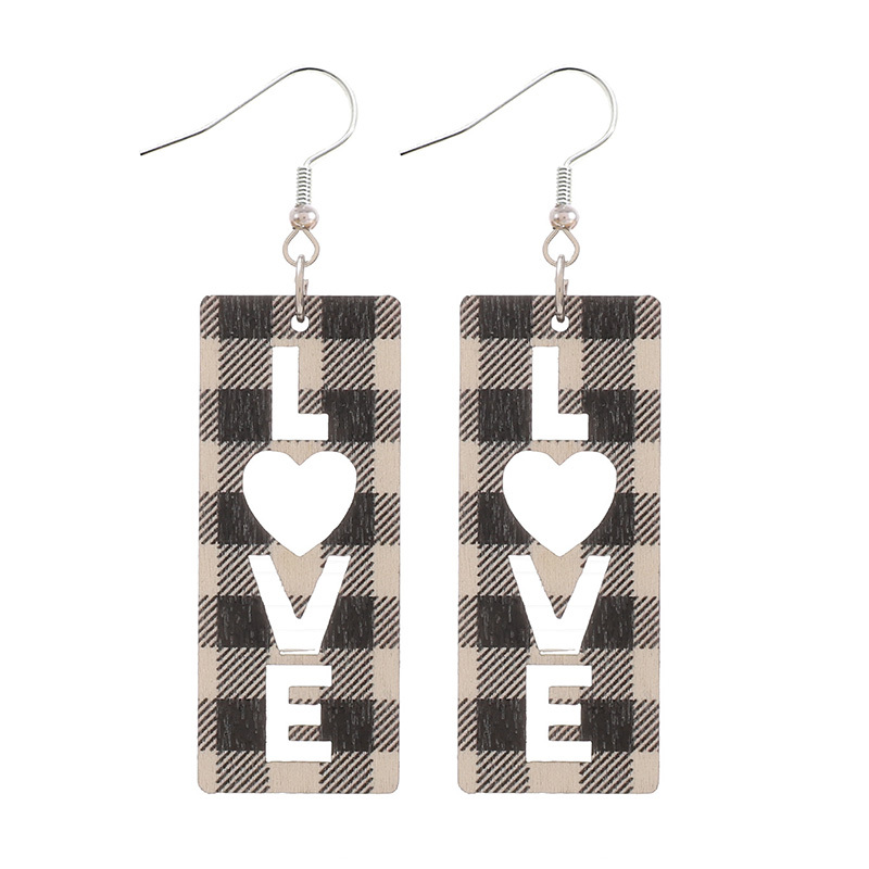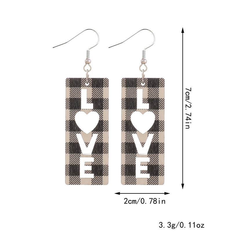 Chic LOVE Hollow Heart Plaid Wooden Earrings