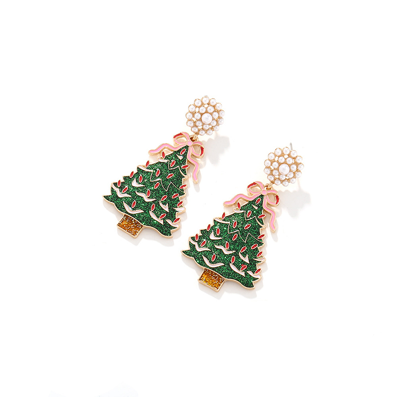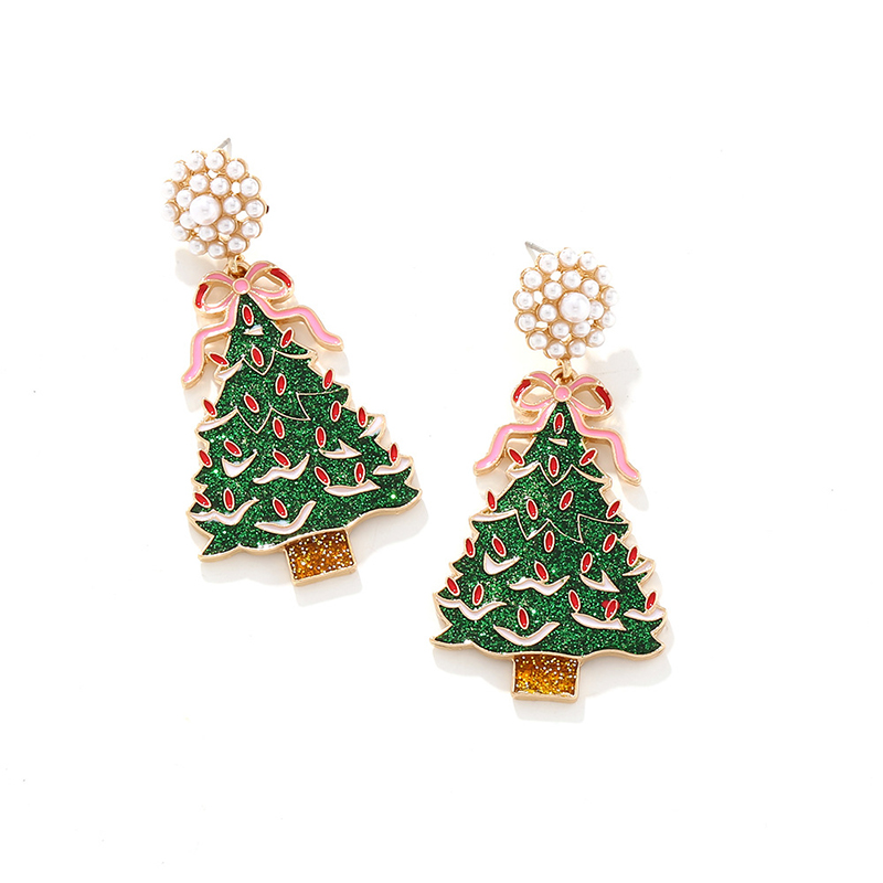 Fashion Bow Rhinestone Christmas Tree Earrings