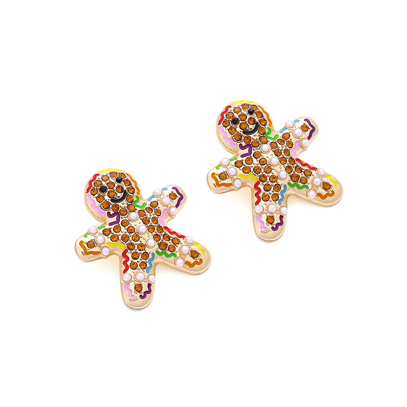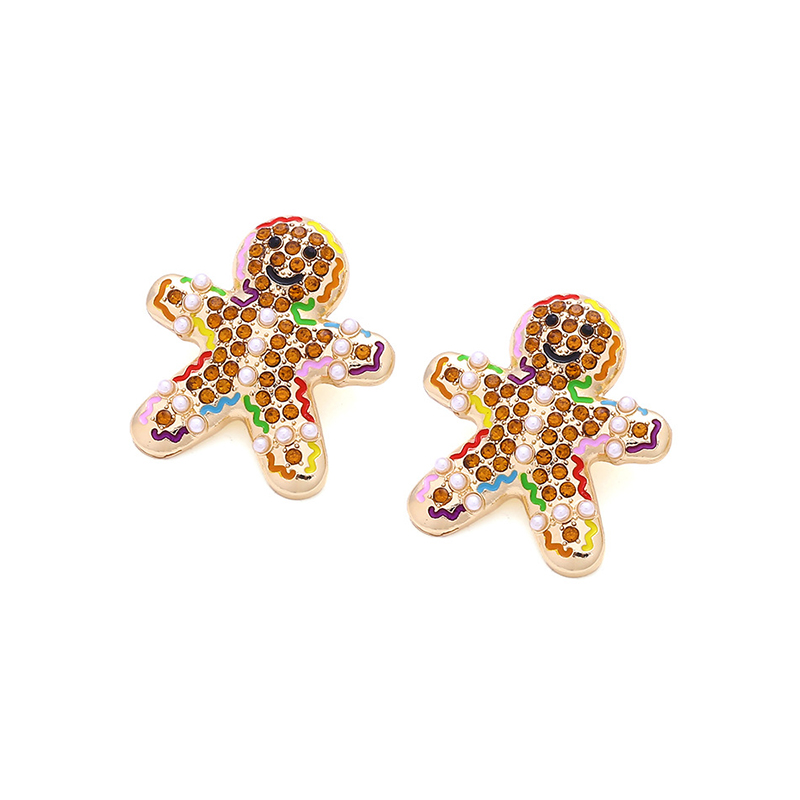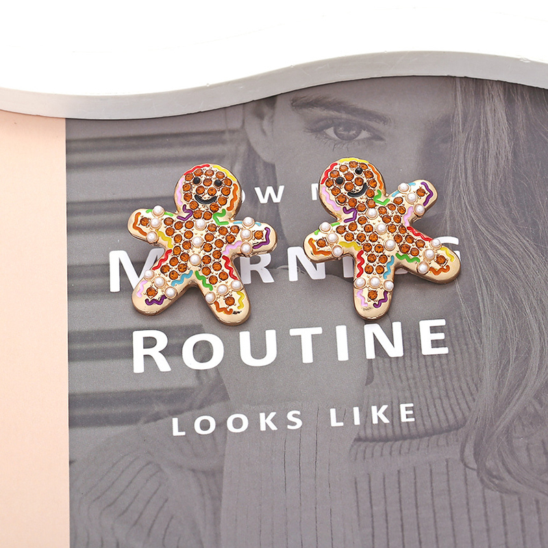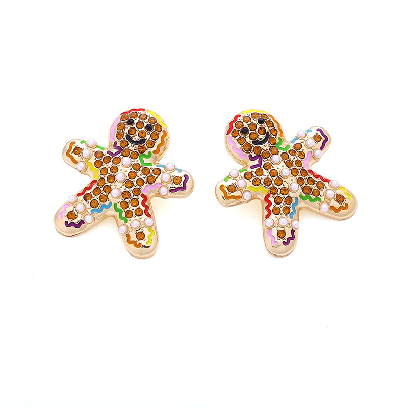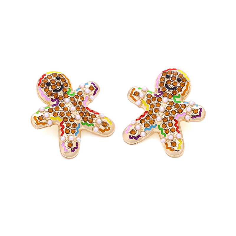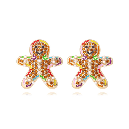 Cute Colored Alloy Christmas Gingerbread Man Earrings