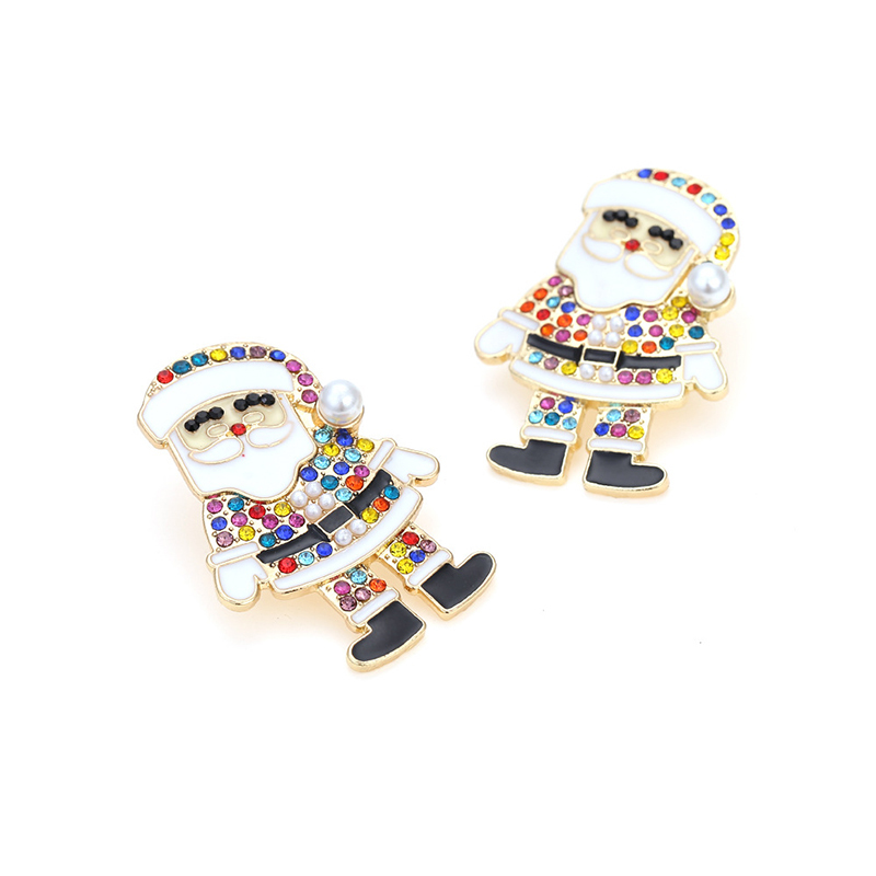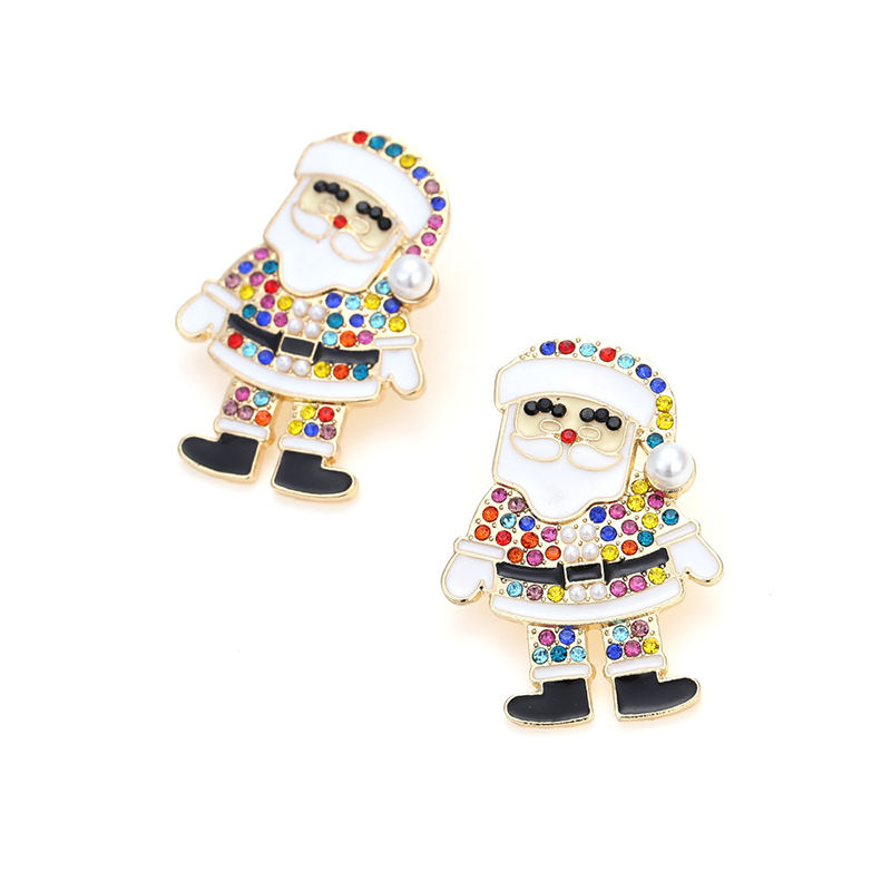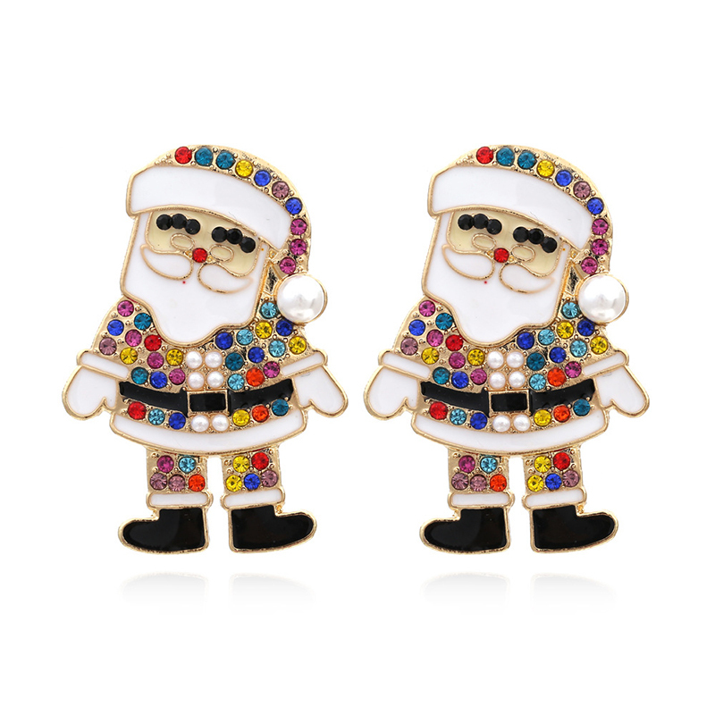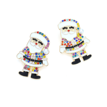 Multi Colored Rhinestone Santa Claus Earrings