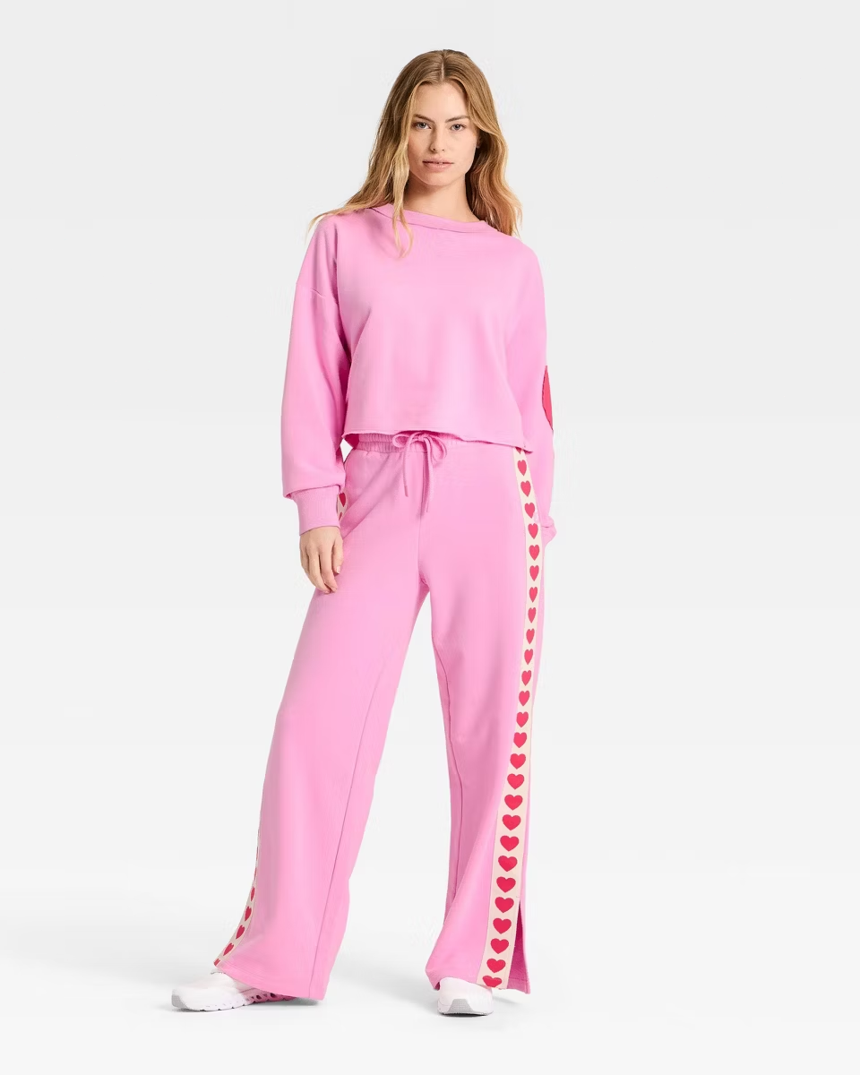 Playful Details: Bold heart patches on the sleeves and a charming "heart-stripe" down the side of the legs.