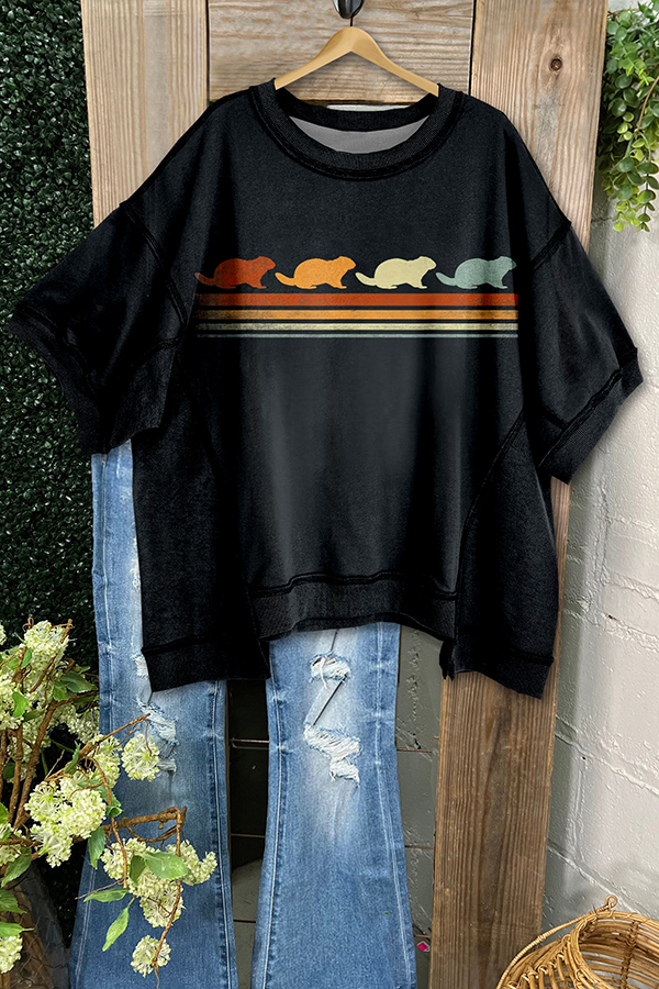 Stay on trend this season in our new casual, round neck sweatshirt. We especially love the graphic print fabric and think this piece will be a new favorite in your closet!
