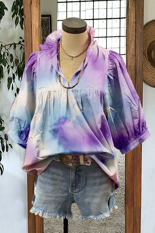Sweet Psychedelic Tie-Dye Print Puff Sleeve Blouse