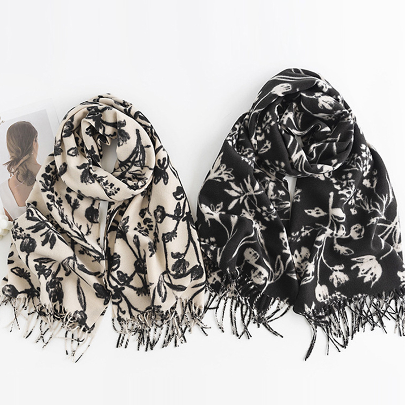 Classic Floral Print Soft Tassel Scarf