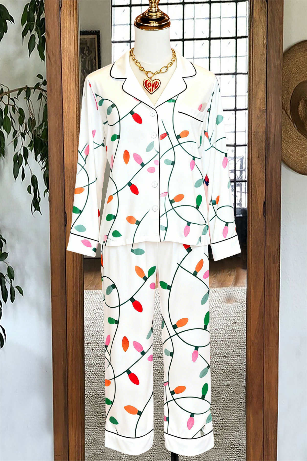Classic Christmas Lights Top and Pants Pajama Set