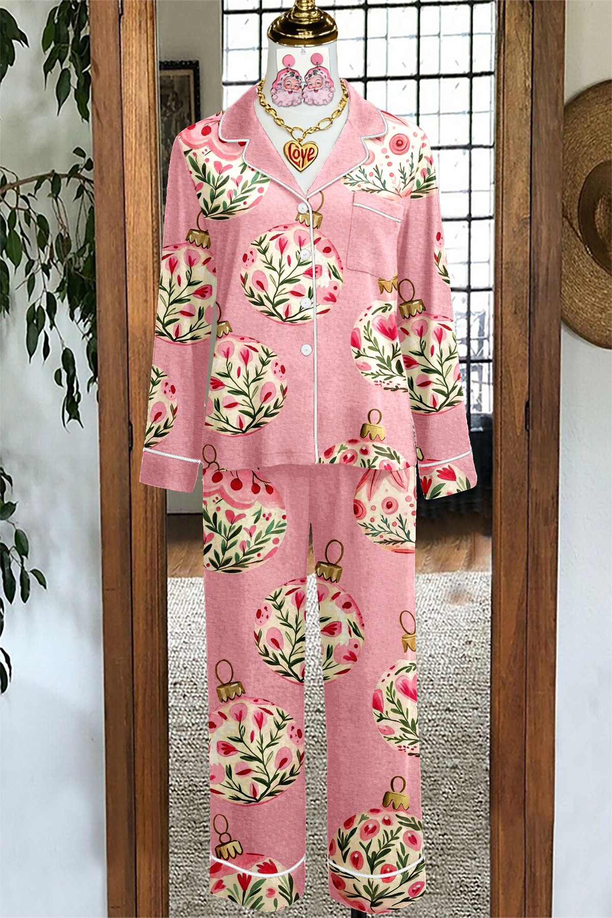 Christmas Decorated Top and Pants Pajama Set