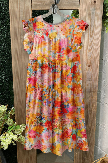 Unique Floral Print Ruffled Pleated Dress