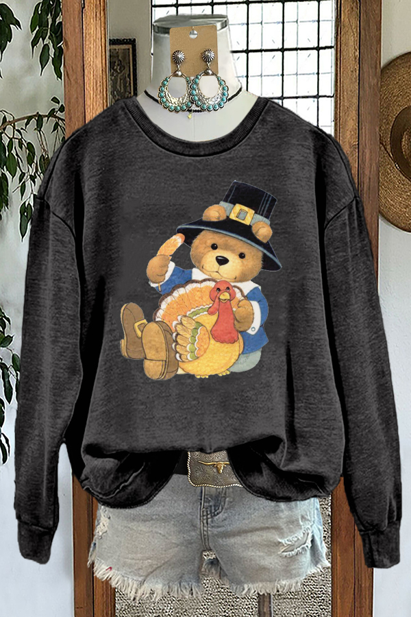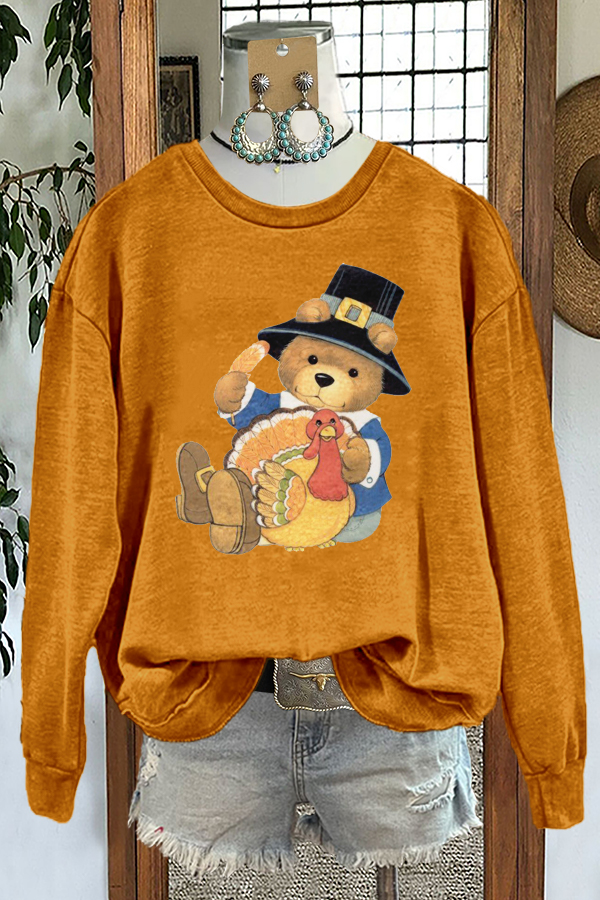 Cute Bear Thanksgiving Turkey Print Sweatshirt
